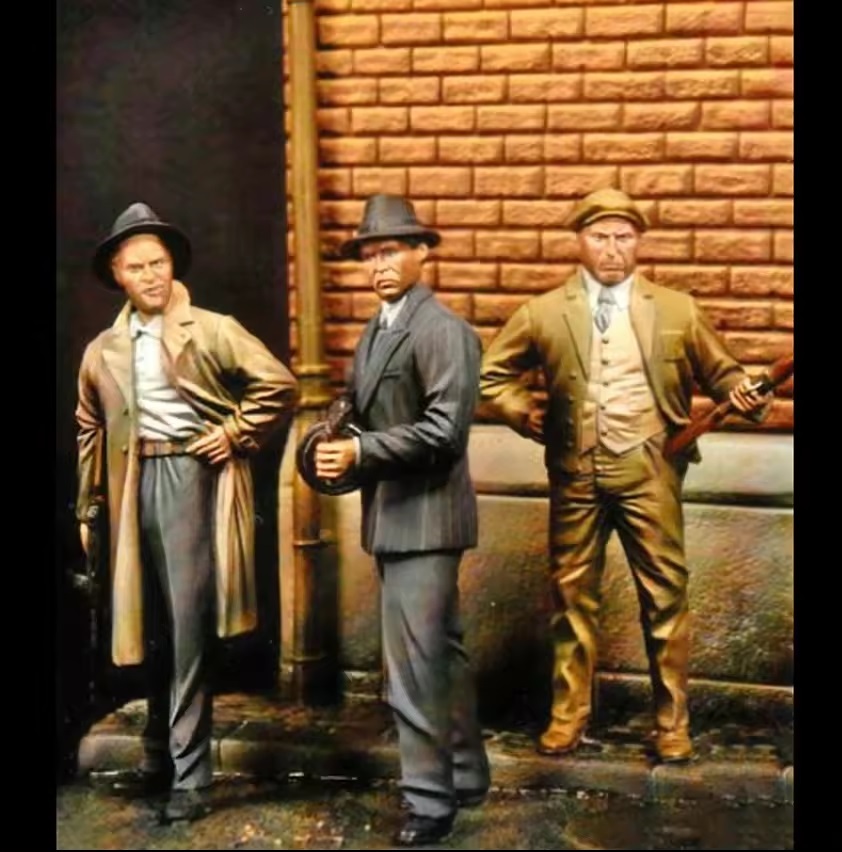 1/32 レトロ マフィア ギャング マシンガン 男性3名 ミニ ジオラマ 樹脂 模型 未塗装 未組み立て レジン フィギュア シーン WR X706