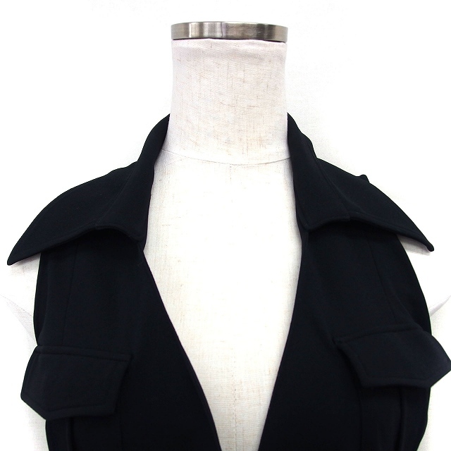 エムケー ミッシェルクラン MK MICHEL KLEIN ワンピース フレア ロング ベスト リボン オープンカラー ノースリーブ 無地 38 黒 ブラック