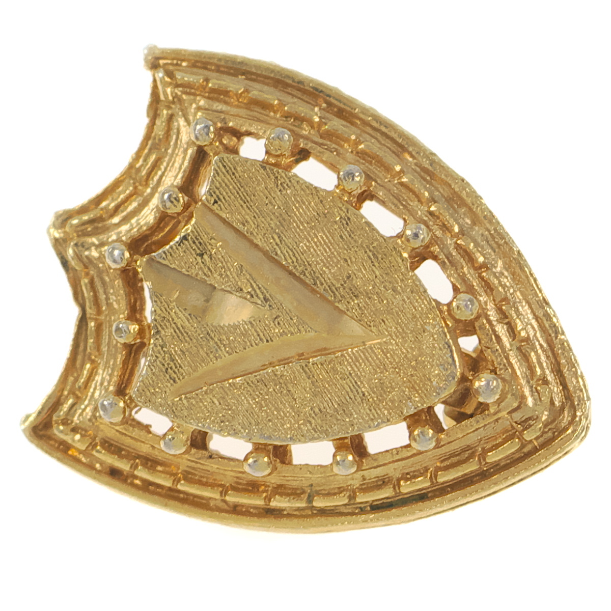 A10431◆【MAMSELLE】◆ シールドモチーフ 小さな盾 艶消しゴールドトーン ◆ ヴィンテージブローチ ◆