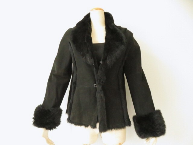 ■上質美品 ラビット毛皮 コート ブラック 黒 毛皮 リアルファー j395