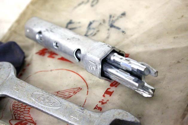 プラグ抜きのホルダーに、画像の様にドライバー等のロッド状工具(4本)も全て完品で付いています。