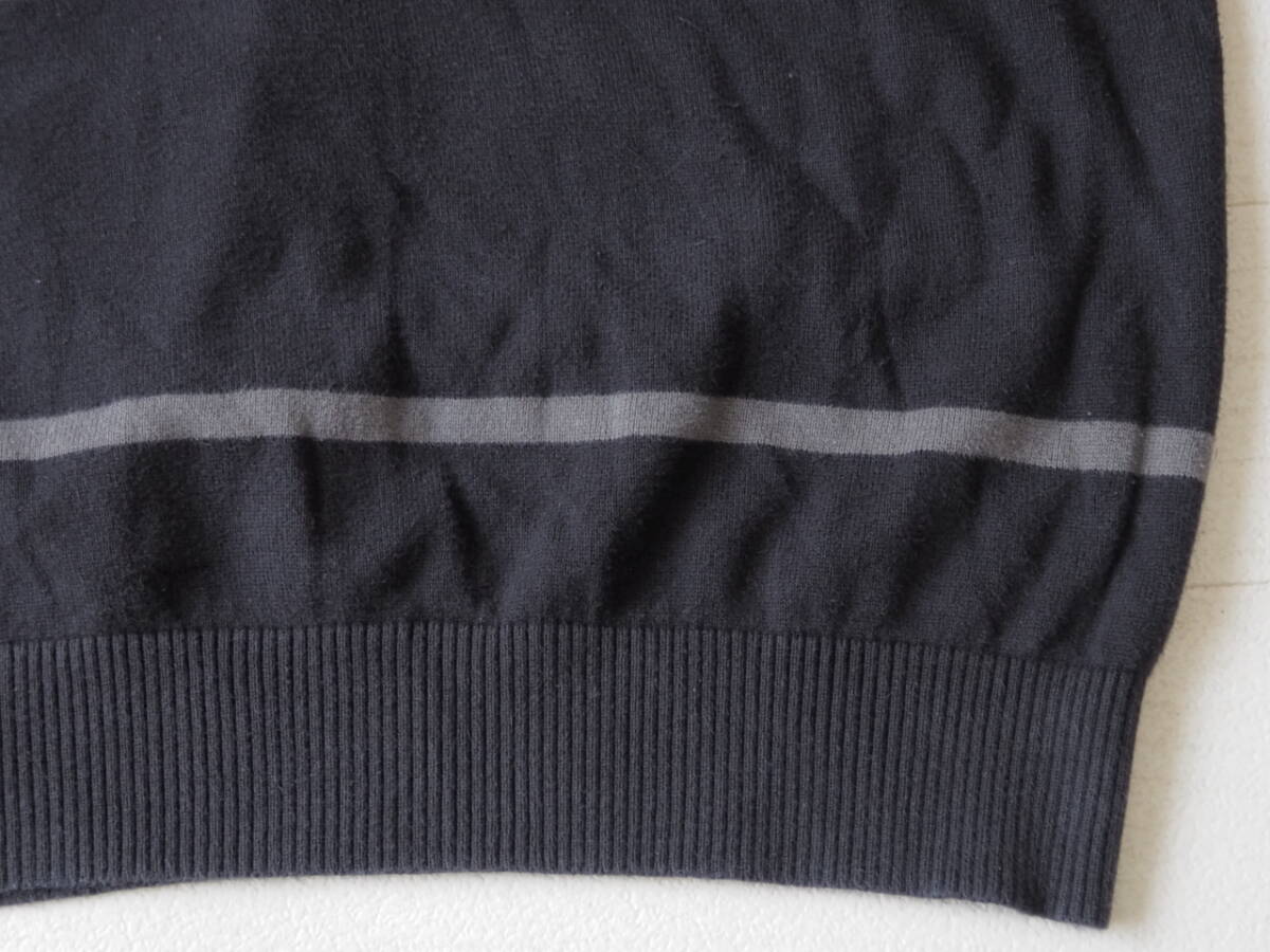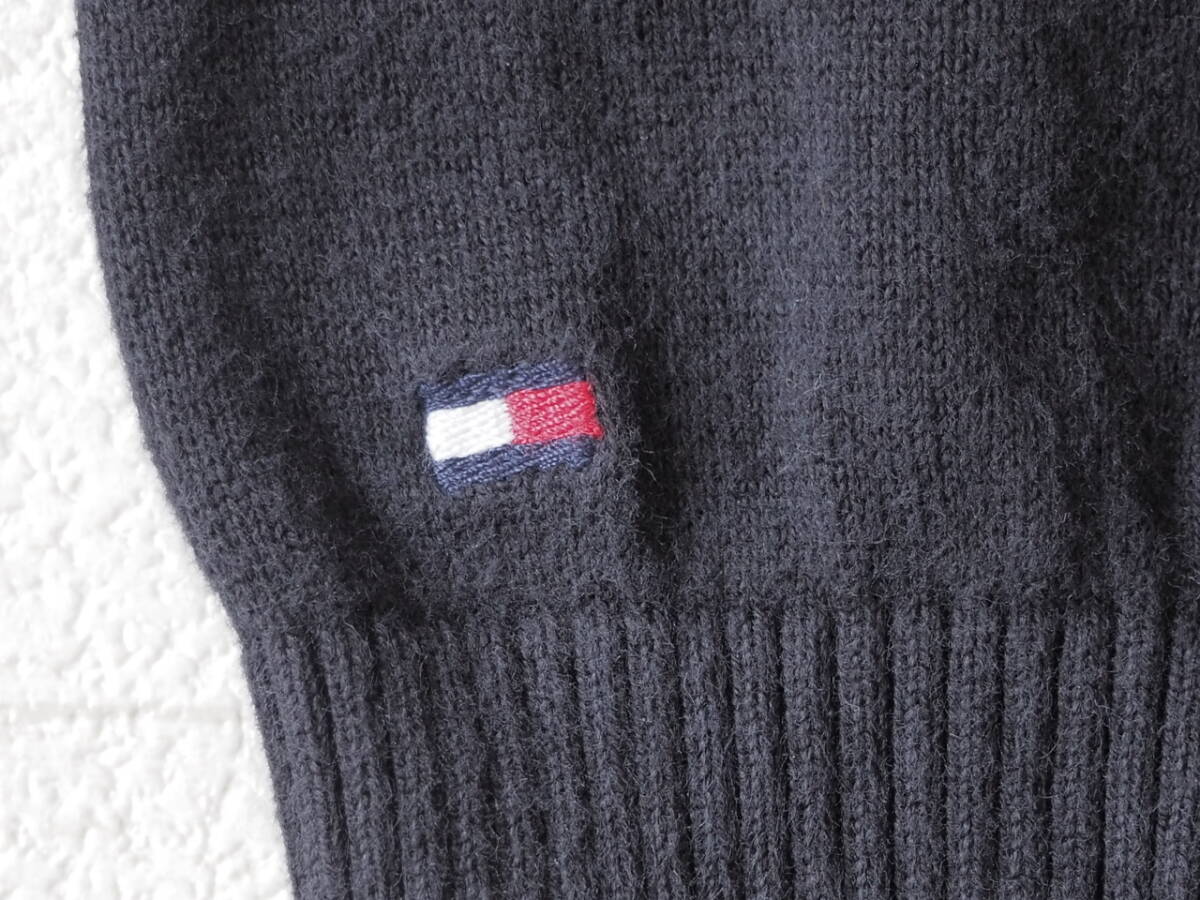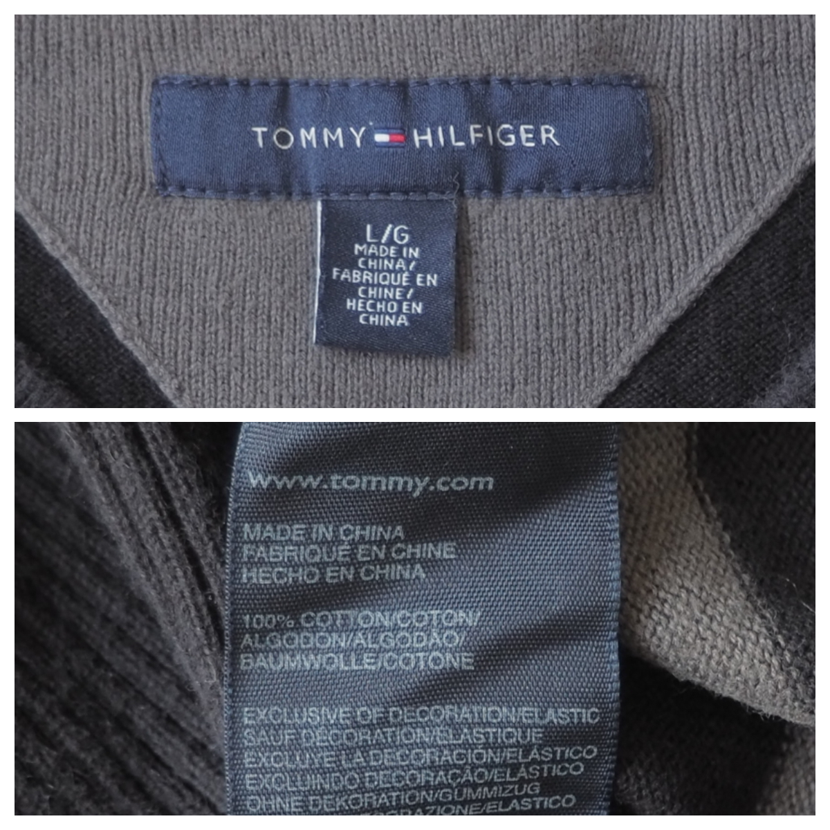 ☆送料無料☆ TOMMY HILFIGER トミーヒルフィガー USA直輸入 古着 Vネック ボーダー ロゴ ニット セーター メンズ L ブラック 中古 即決