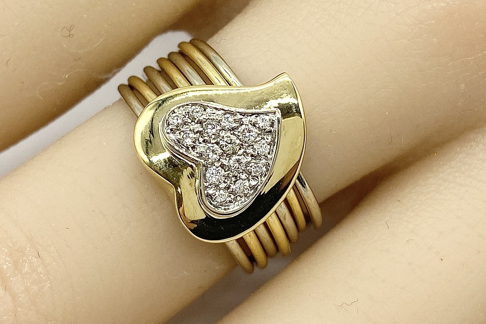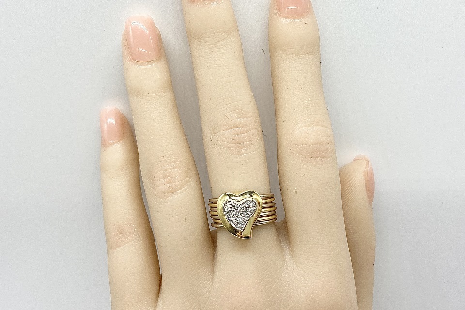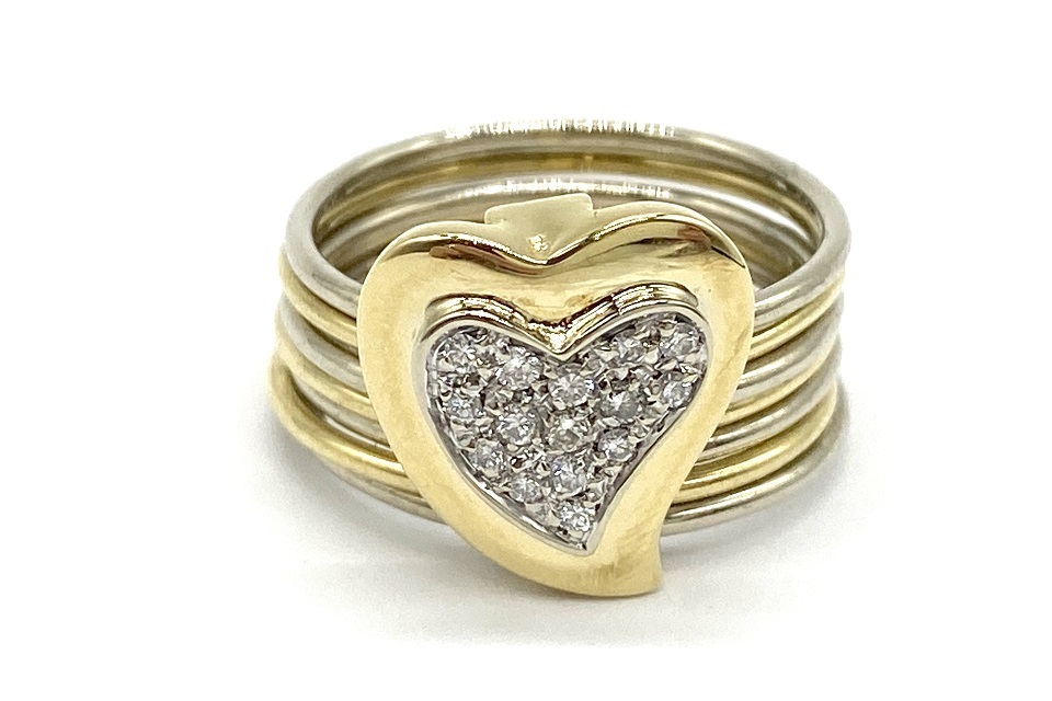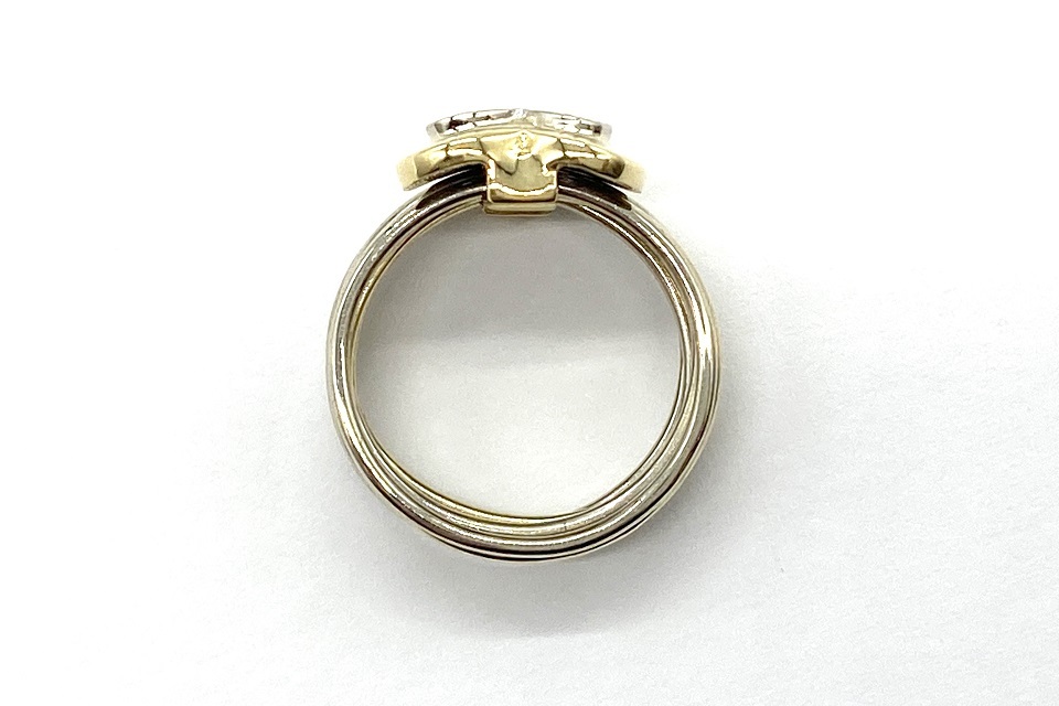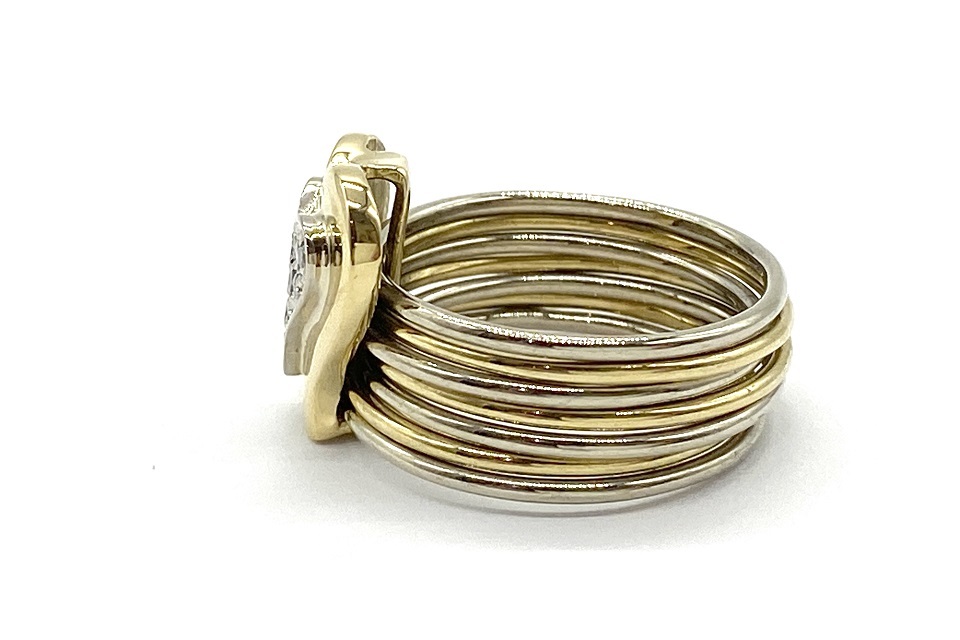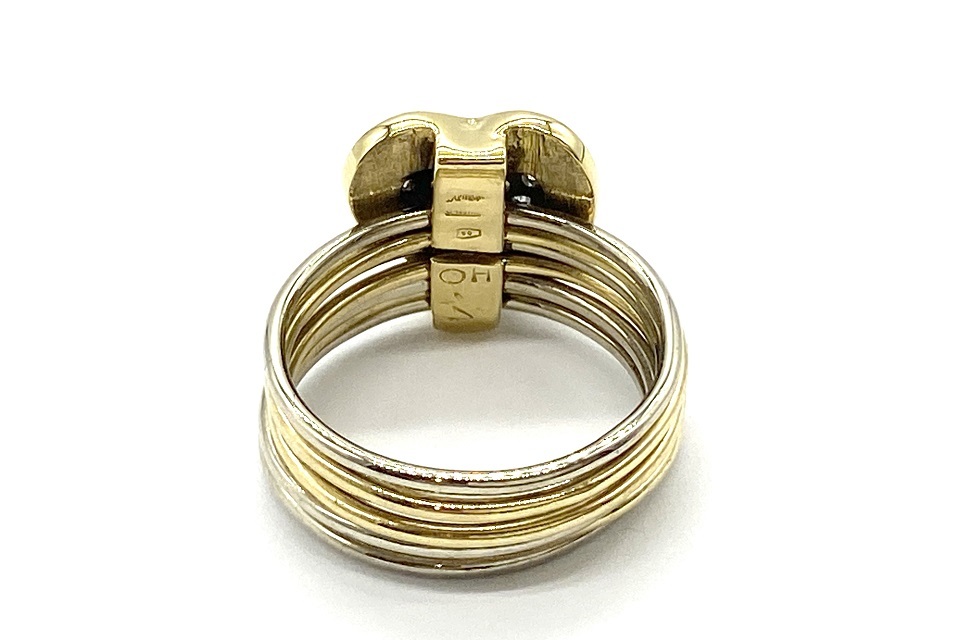 解説 | 元はダミアーニのお品でしたが、オリジナルデザインからリングを3本外し、よりデイリーに使いやすくリフォームされたお品。7本の細いリングがサラサラ可動し、幅広ですがご負担が少ない装着感です。 |