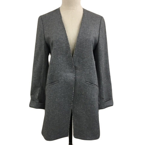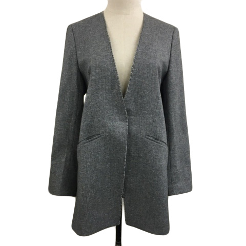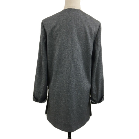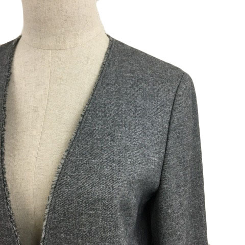 コムサデモード COMME CA DU MODE ジャケット ノーカラー シングル ウール フリンジ スリット メランジ 無地 長袖 9 グレー レディース