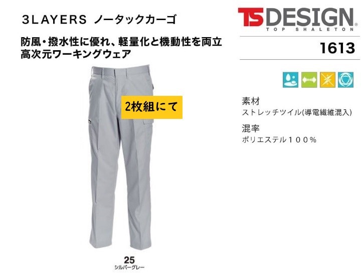 ビックイナバ特価◆TSDESIGN 1613≪秋冬≫3LAYERSノータックカーゴ【25シルバーグレー・W85cm】定価1枚8580円の品、2枚即決2980円