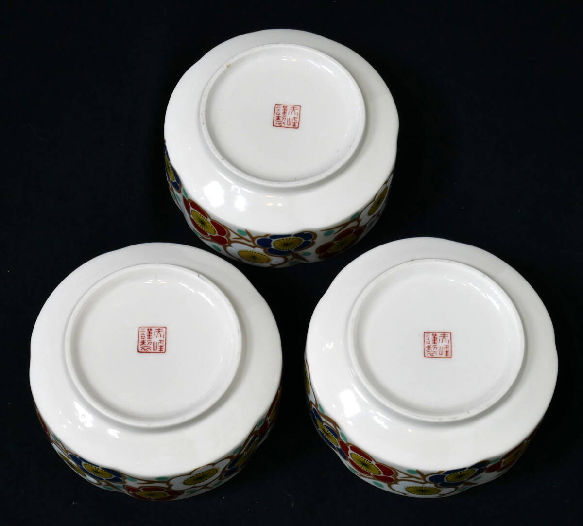 | ▲(R703-H104) 赤峰謹製 和柄 花柄 3客セット 深皿 中皿 小鉢 皿鉢 陶磁 和食器 直径約11.8cm×高さ約5.5cm | ||