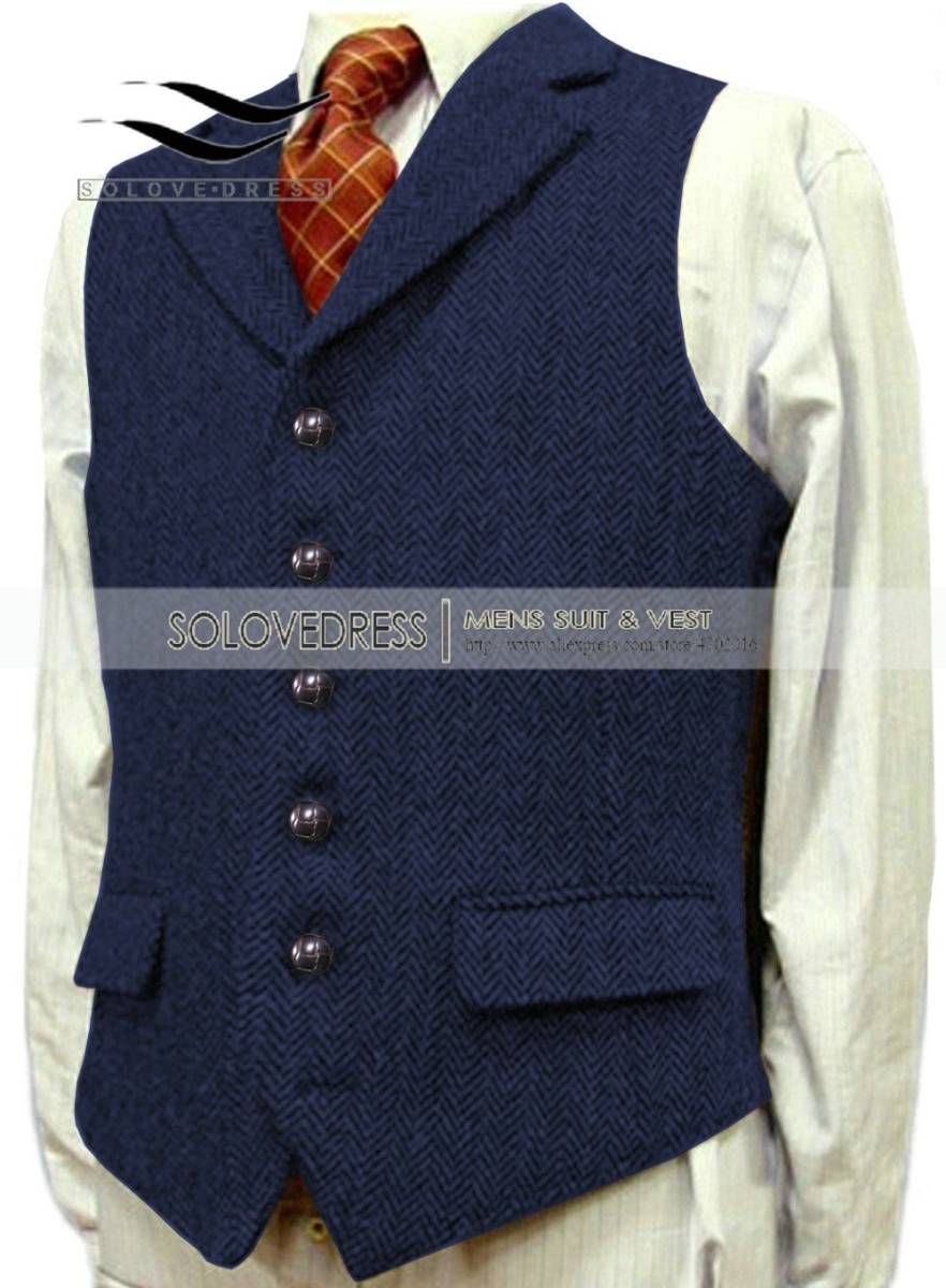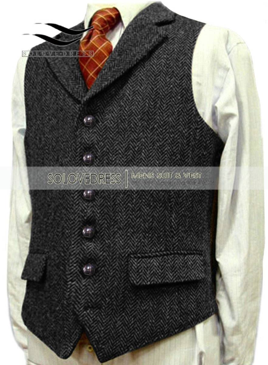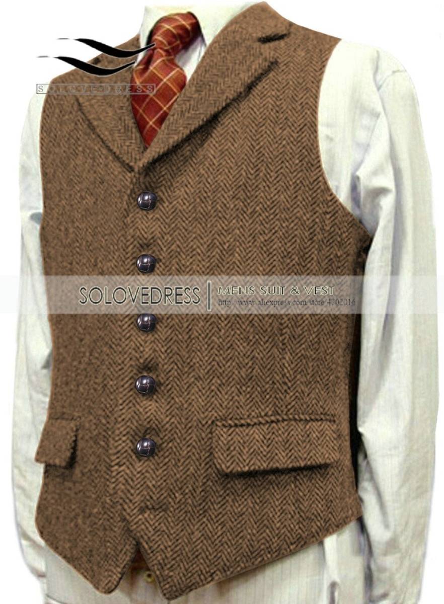 お買得◆メンズ カシミアブレンドウール ツイード ベスト スリム XS~3XL ブラウン