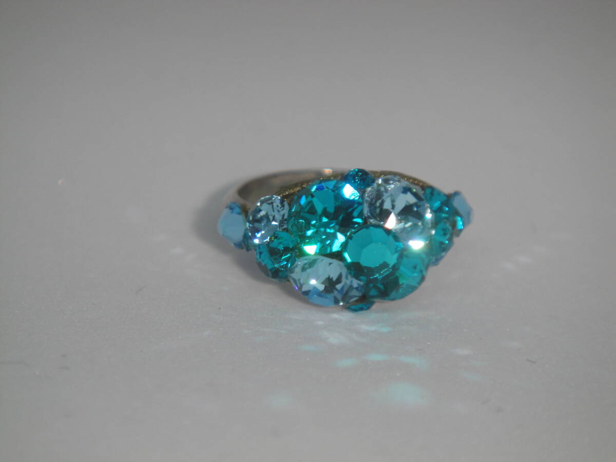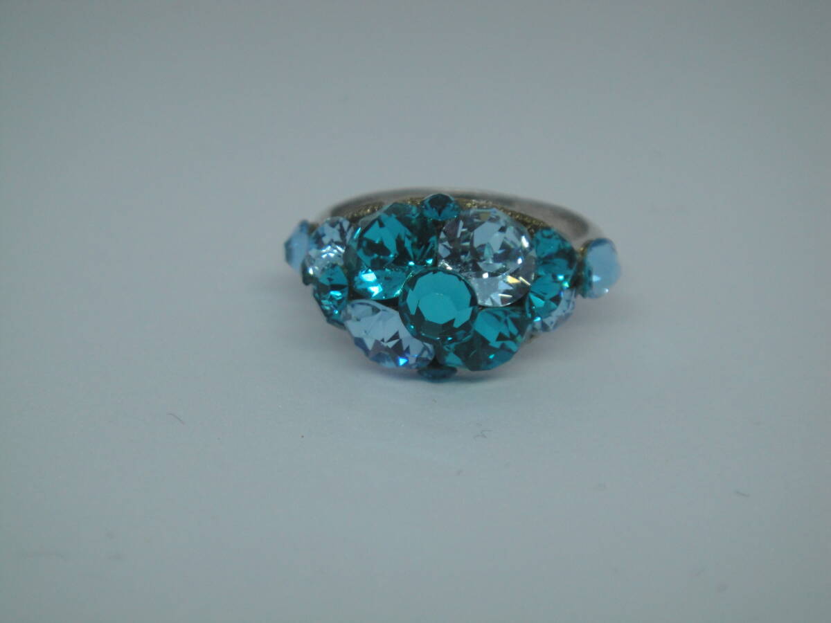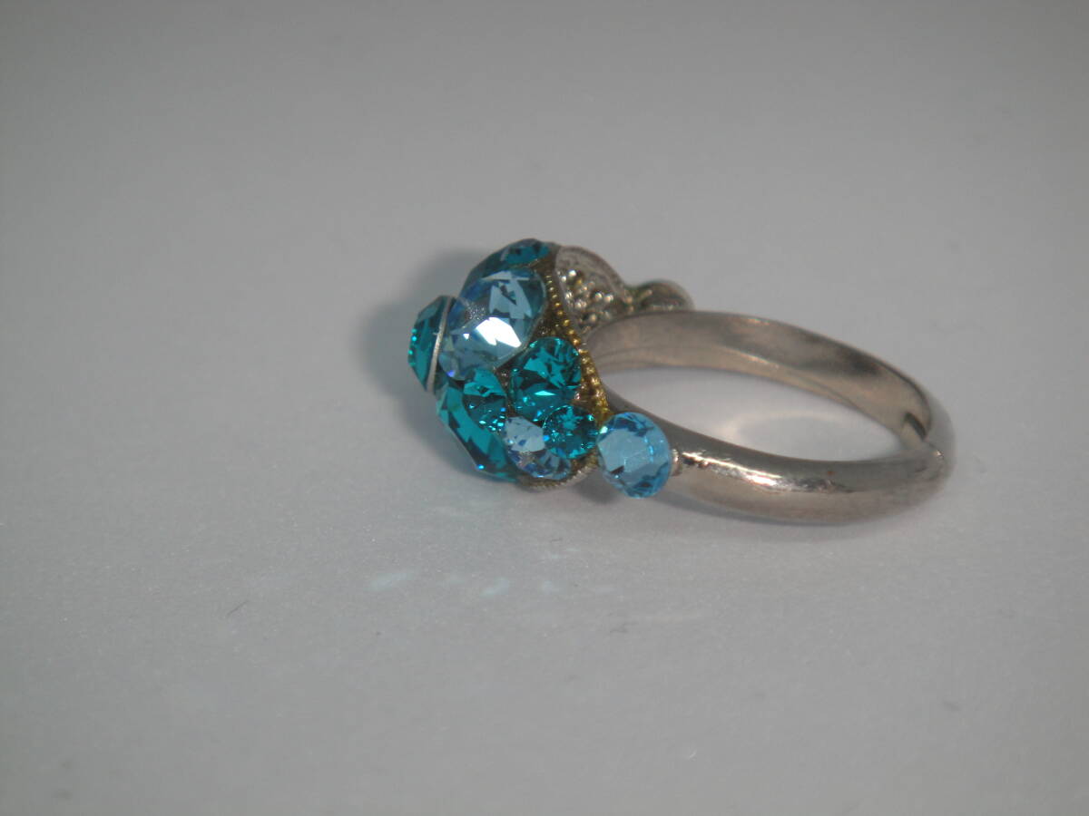 シルバーベースにブルー系のストーンがたくさん付いた指輪です。