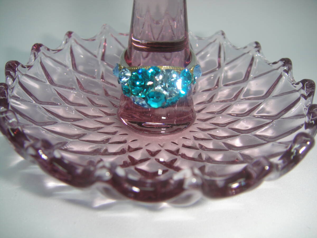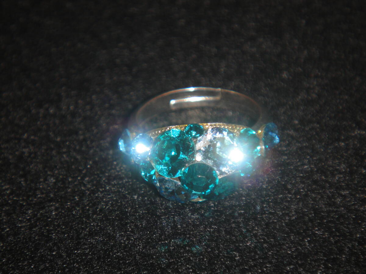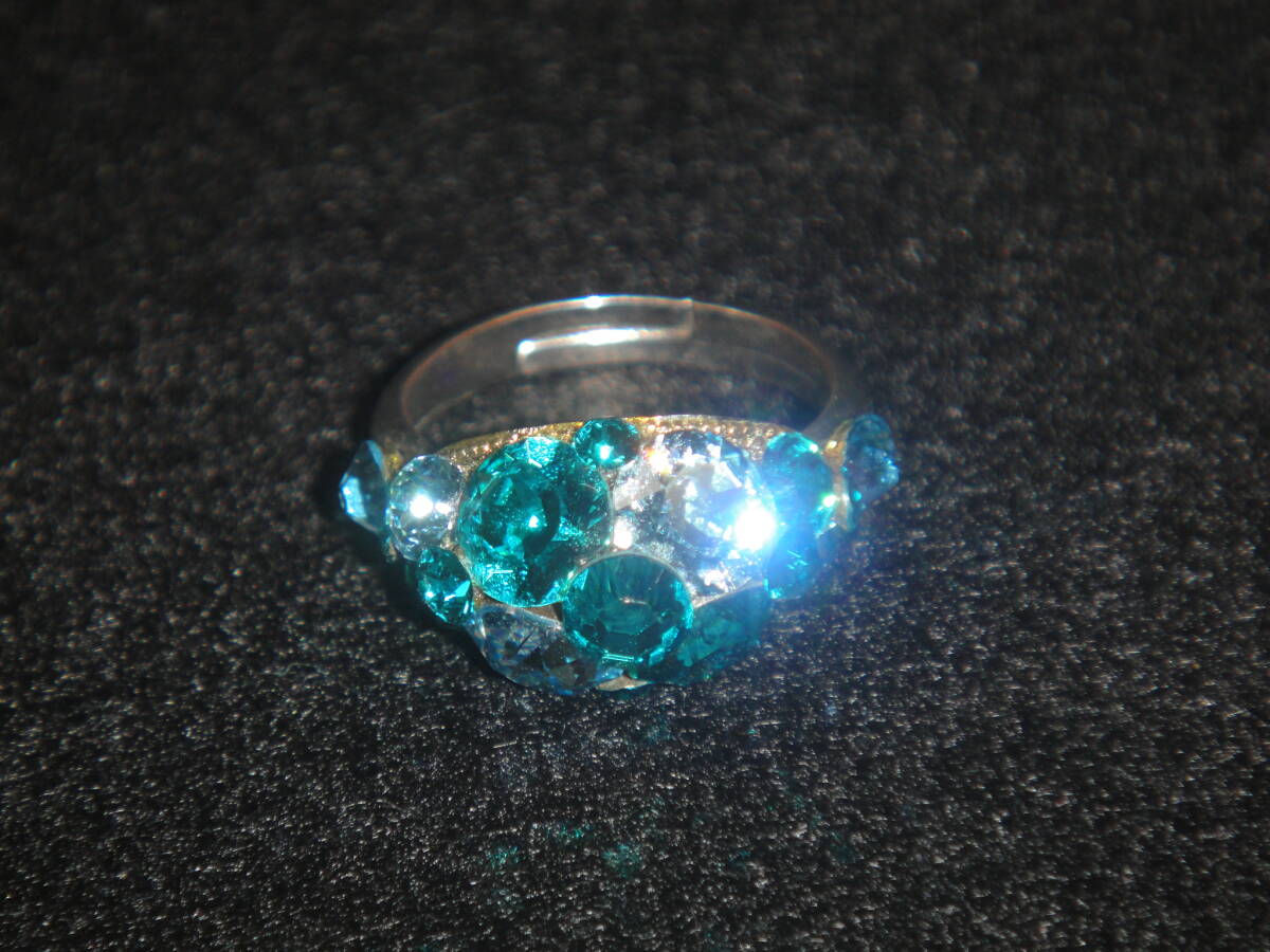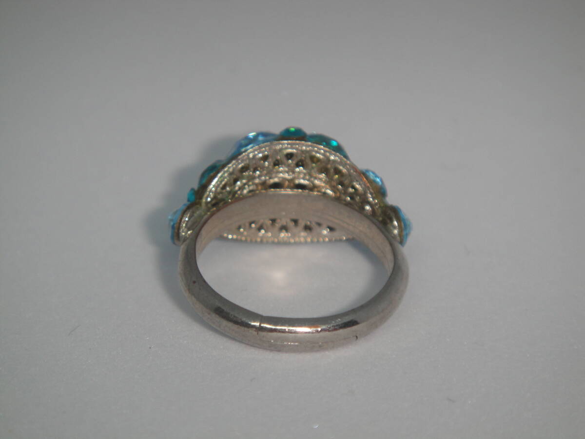 シルバーベースにブルー系のストーンがたくさん付いた指輪です。