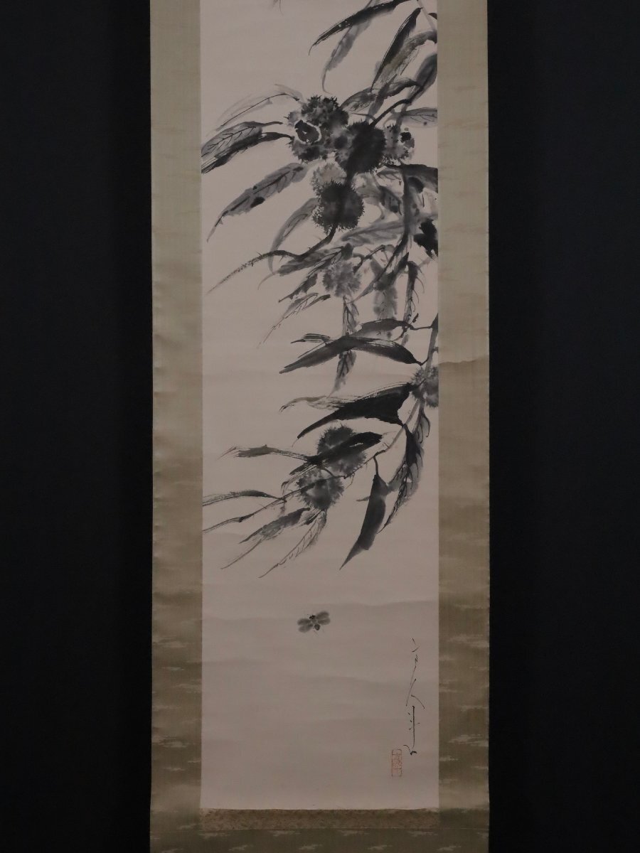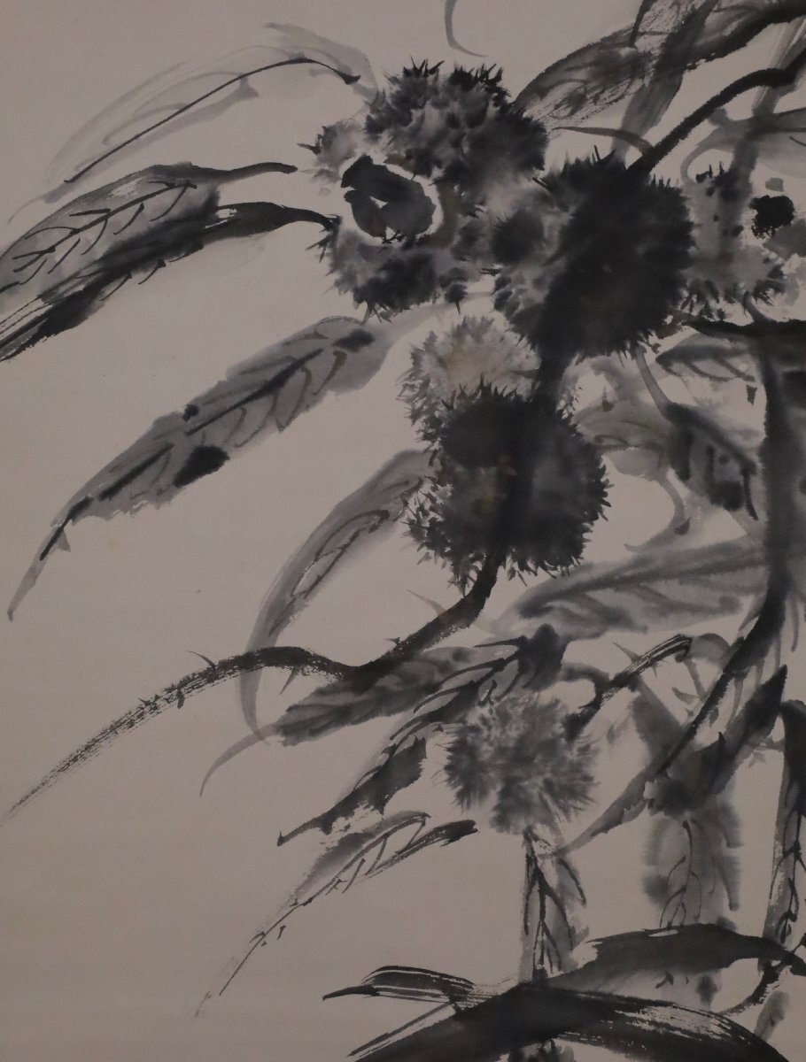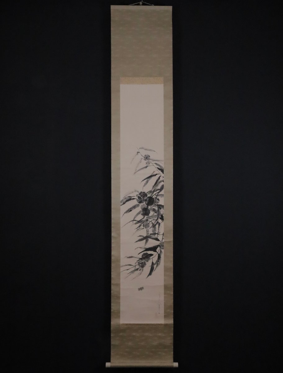 【模写】吉】12072 玉村方久斗 栗図 日本画家 前衛芸術運動 菊池芳文師事 茶掛け 茶道具 中国画 掛軸 掛け軸 骨董品