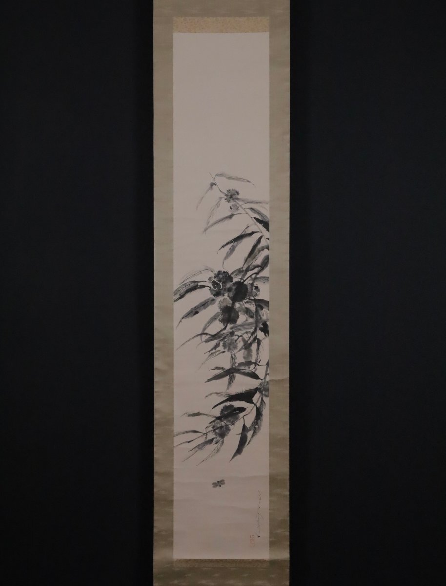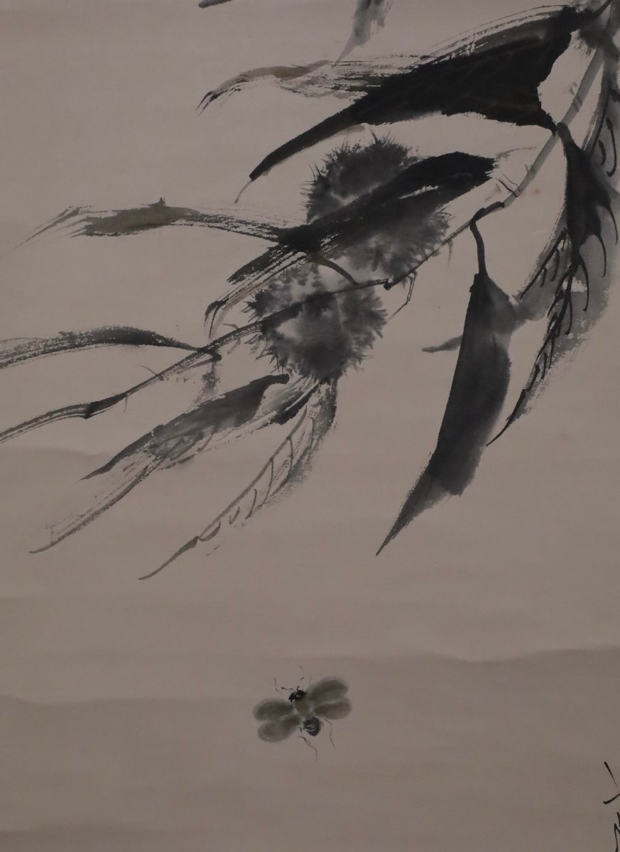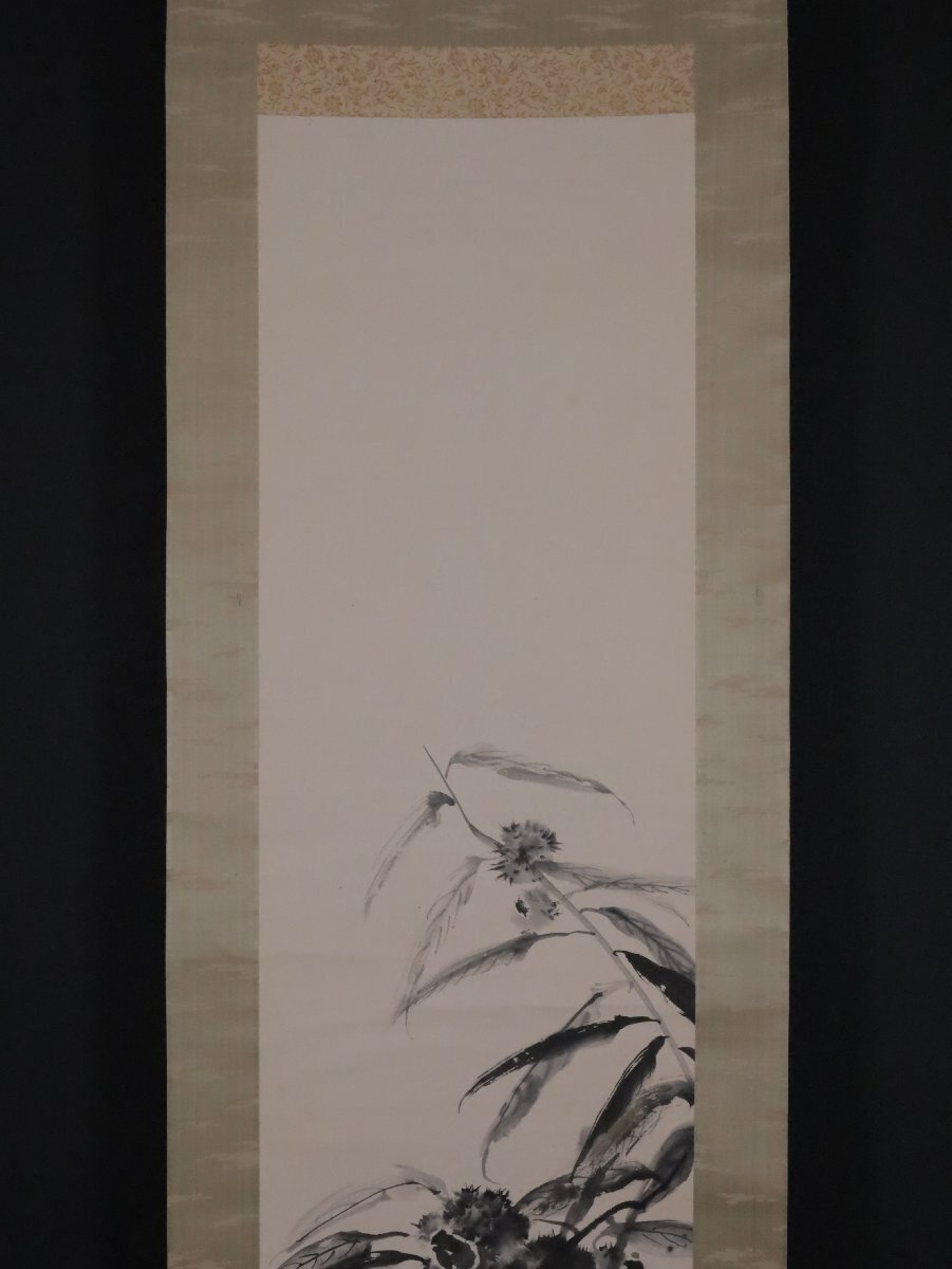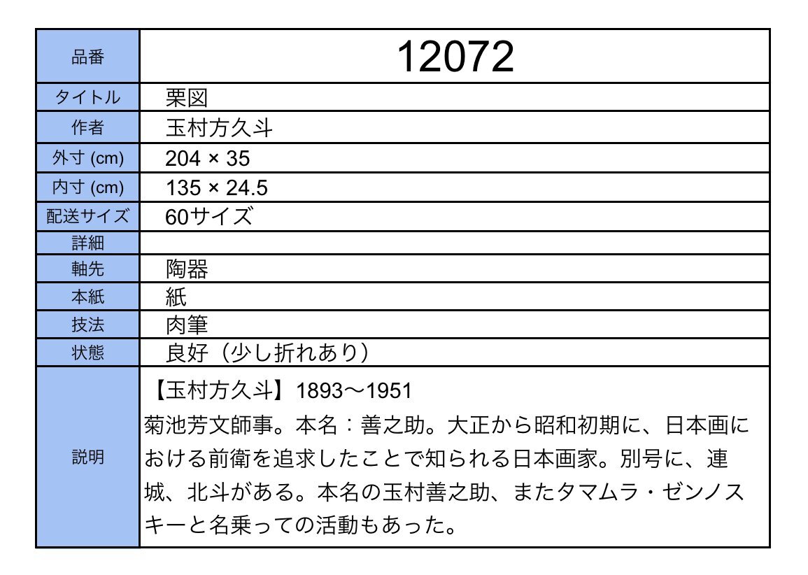 【模写】吉】12072 玉村方久斗 栗図 日本画家 前衛芸術運動 菊池芳文師事 茶掛け 茶道具 中国画 掛軸 掛け軸 骨董品