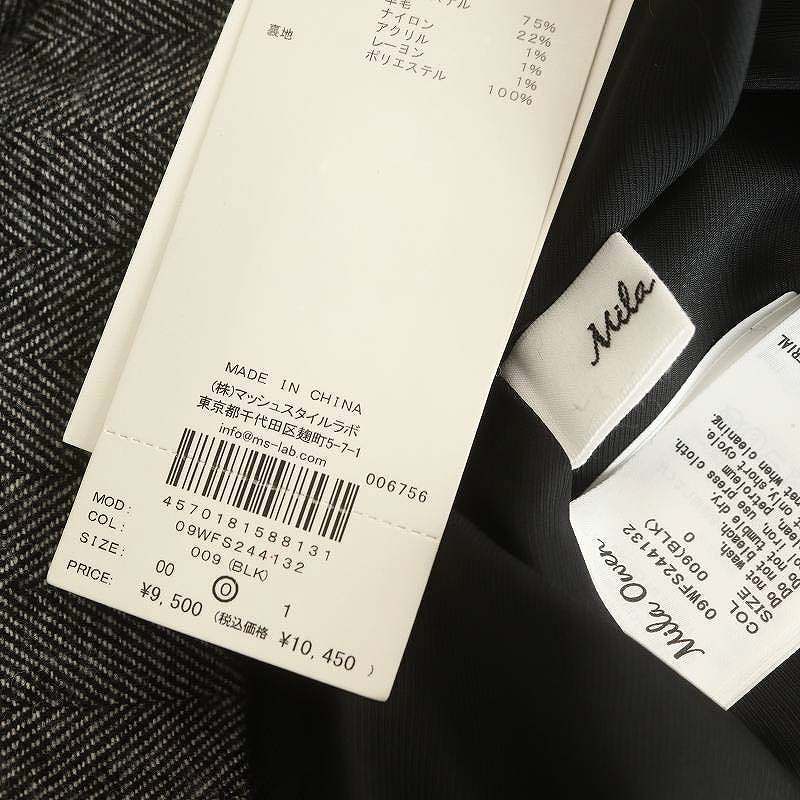 未使用品 ミラオーウェン Mila Owen 24AW ダブルウエストツイードミニスカート タイトスカート ヘリンボーン 0 ブラック レディース