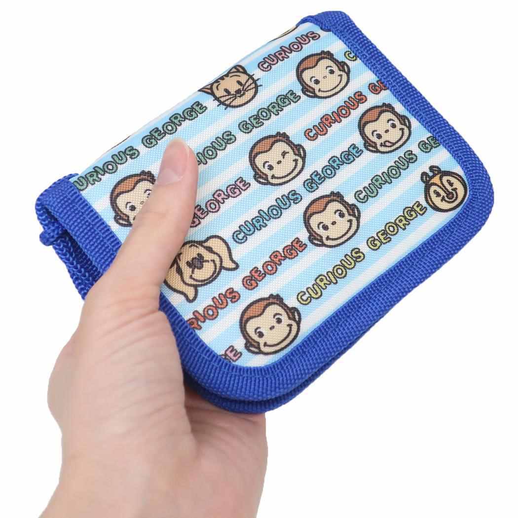 首から下げれるネックストラップ付き 世界中で愛されている人気絵本[キュリアスジョージ/おさるのジョージ]グッズにまたまた可愛いnewアイテム登場こちらは定番人気アイテム[キッズウォレット]全面ファスナー付きでカードポケット、面ファスナー付きのコインケースなど充実。ロングストラップ付きで首から下げることが出来ます。かわいいキッズウォレットいろいろあるのでお気に入りを探してください。サイズ:約120x95x15mm素材:PVC/ポリエステル