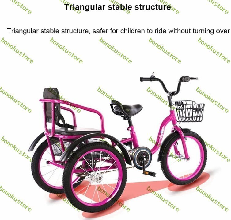 子供用シングルスピード三輪車 16 インチの安全なクルーズ バイク 携帯用三輪自転車 バスケットと背もたれ付き お子様へのギフトに最適 赤