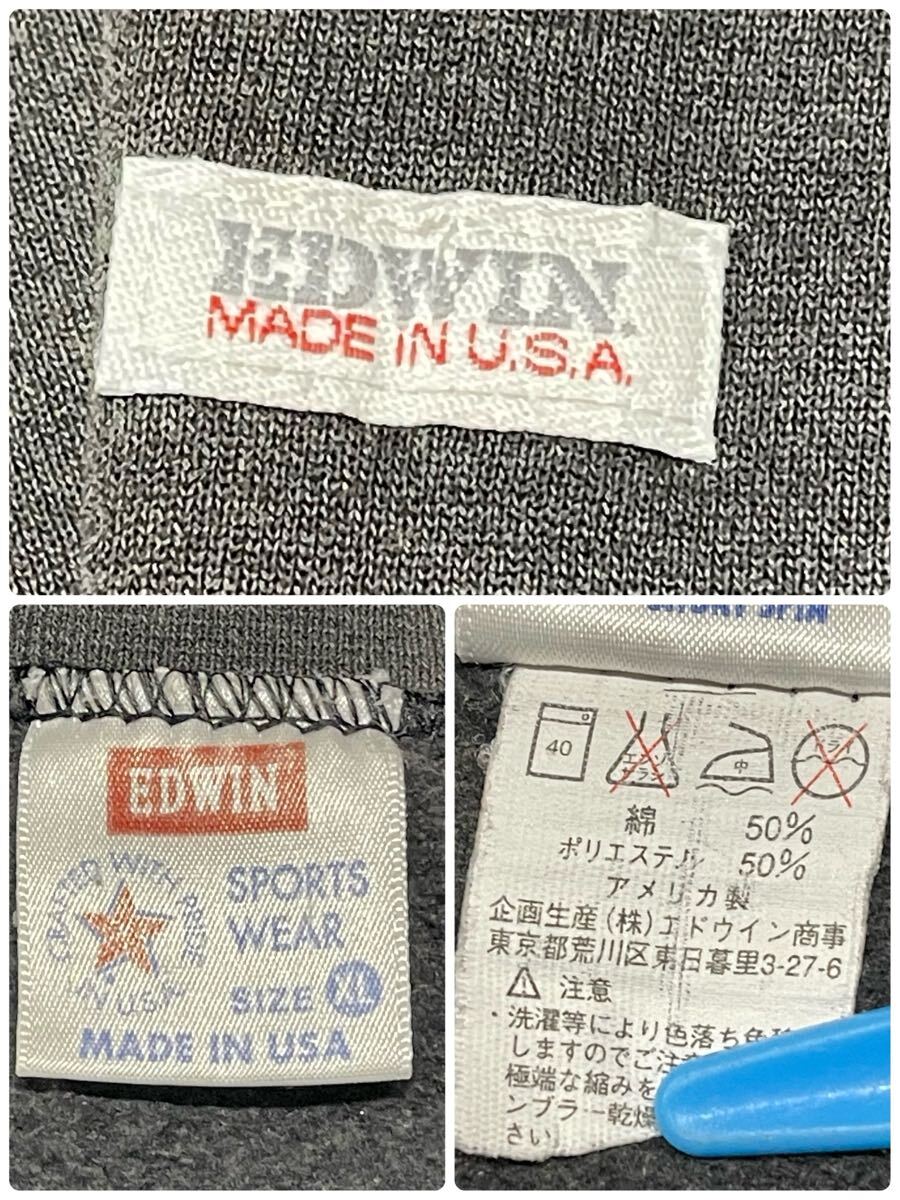 90s EDWIN USA製 ブラック 無地 スウェット トレーナー エドウィン  90年代 単色 アメリカ製 オールド vintage ヴィンテージ YL1763 ビンテージ MADE IN USA フィフティーフィフティー 50/50 FIFTY-FIFTY シンプル 大きいサイズXL オーバーサイズ ビッグシルエット フェード 色褪せ