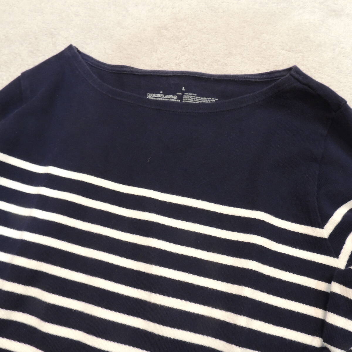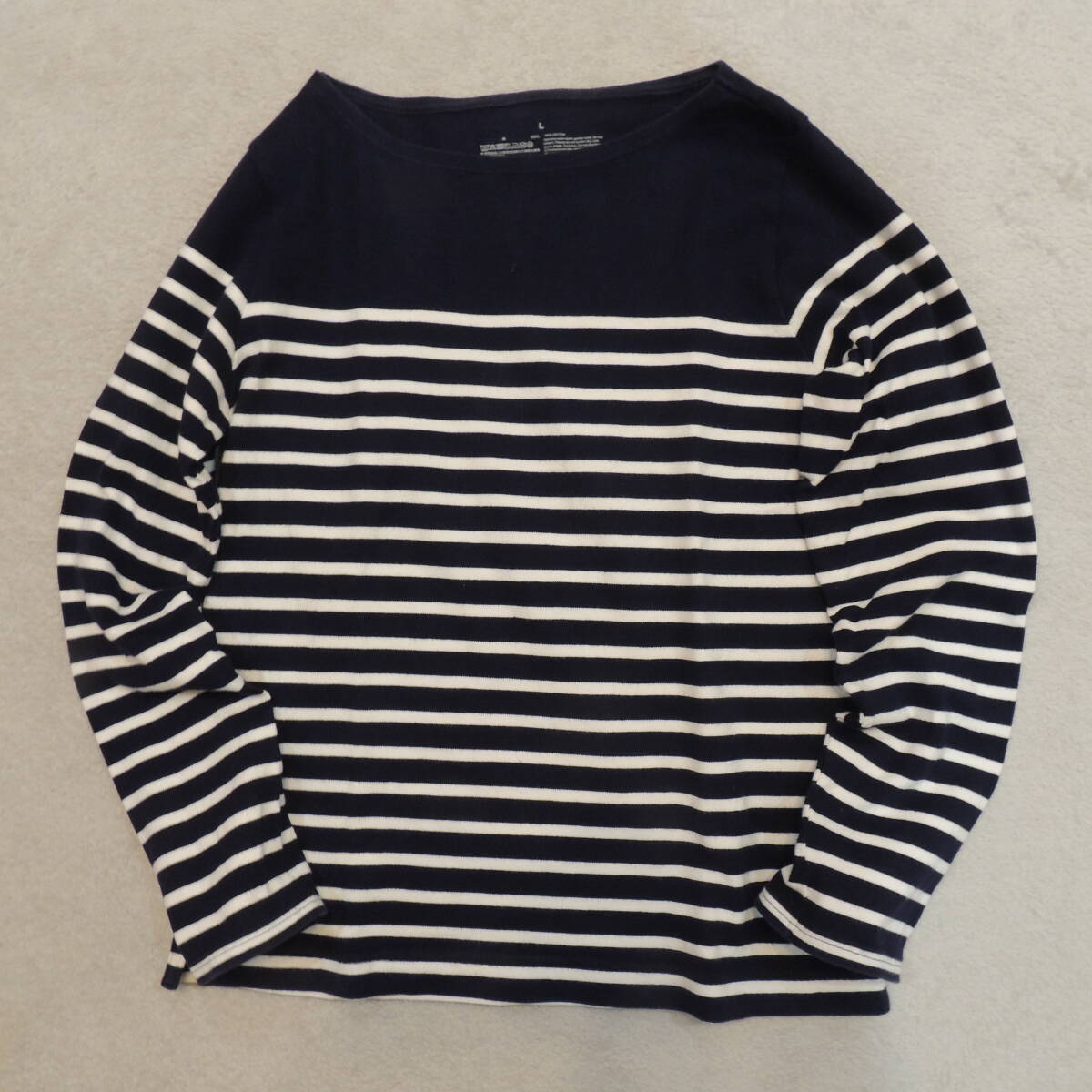 無印良品 良品計画 ボートネック マリンボーダー 長袖Tシャツ 紺×白 レディースL 状態良