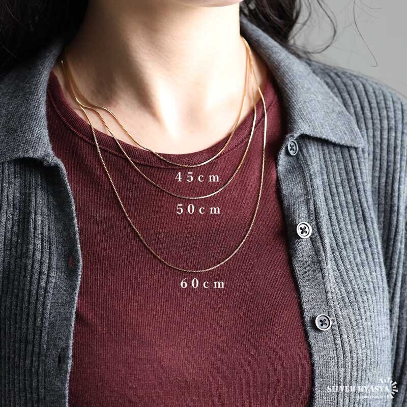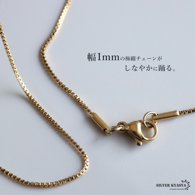 幅1mmの極細ベネチアンチェーンネックレス。シンプルで華奢なスタイルがさり気なくこなれ感を演出し、上品な印象を与えます。