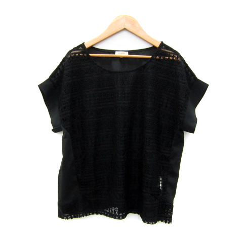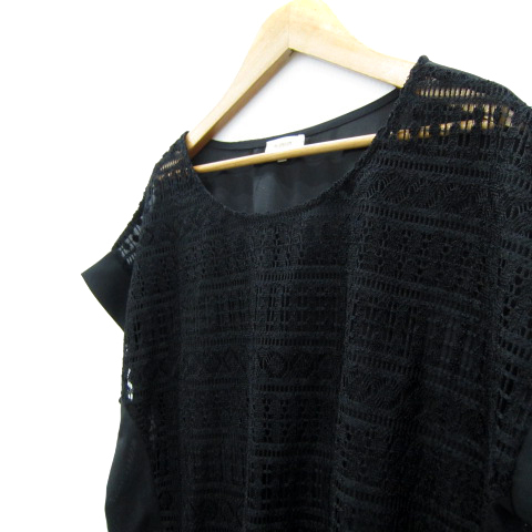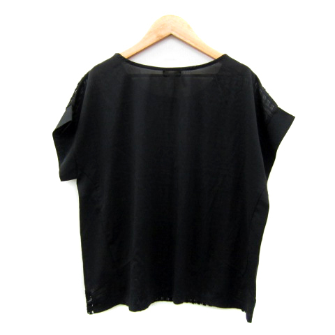 ハッシュアッシュ HusHusH カットソー 半袖 ラウンドネック レース 切替 無地 シースルー 3 黒 ブラック /SY32 レディース