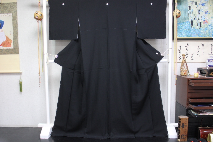 最高クラスの一越ちりめん地 一越のシボがややはっきり目の重め生地 染は漆黒の黒色