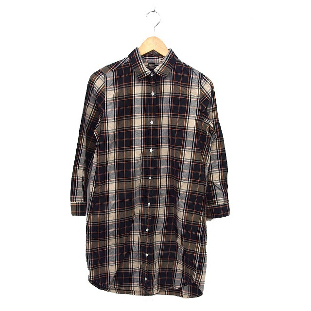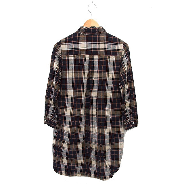 アーバンリサーチ ドアーズ URBAN RESEARCH DOORS チェック シャツワンピース Iライン ひざ丈 コットン 綿 長袖 ONE 黒 ブラック