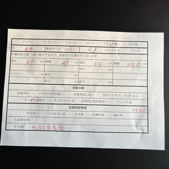 詳しい平置き採寸は、写真にて掲載しております。