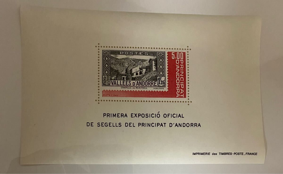 フランス領アンドラ アンドラ切手展記念 切手の切手 小型シート1種完 未使用 NHです。