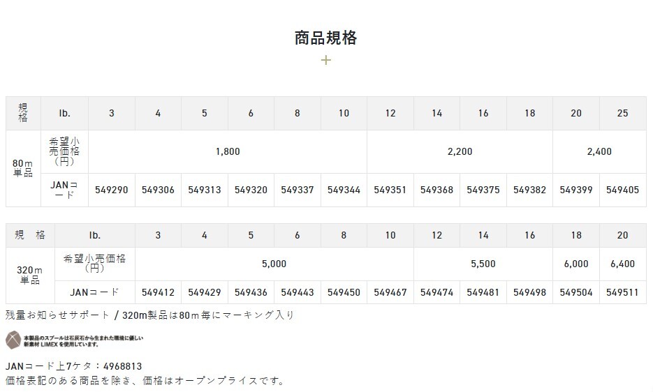●カラー:クリア/320m巻は80m毎にマーキング入り