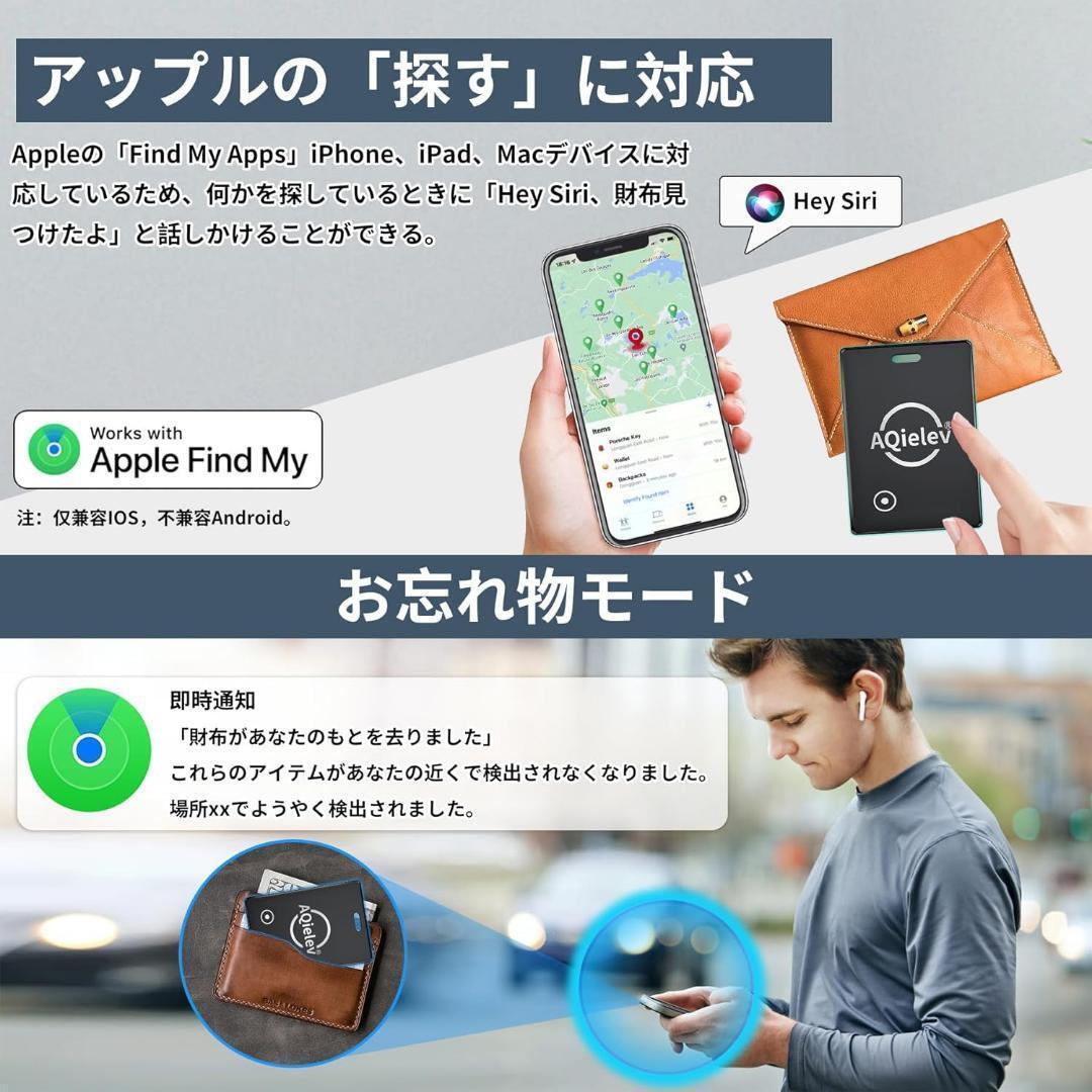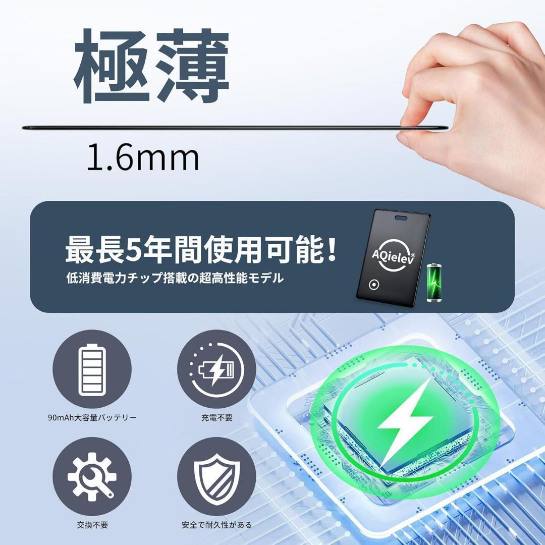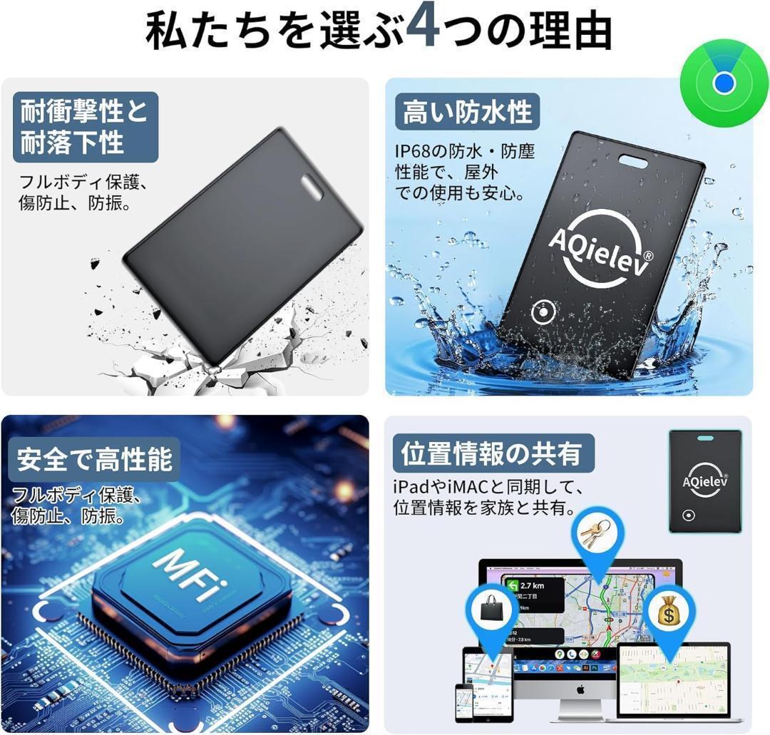 紛失防止タグ【2025 業界超薄 iOS対応 GPSリアルタイム追跡 】 AQielev エアタグ 0.16cm スマートタグ 電池交換不要 gps 子供 エアタグ IP65防水 Appleの「探す」に対応 エアタグ 財布に入れる 小型 バレない エアタグ 100dB 音量カバー 1000KM超遠距離 カード型紛失防止タグ/電池寿命 5年 / MFI技術認証/取扱説明書