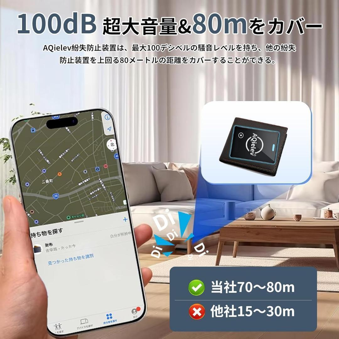 【100デシベルの超大音量80mの距離をカバー】AQielevと米国のトップ企業が開発・製造した紛失防止デバイスは、騒音レベルが最大100デシベルで、通常のチップを使用した市販のスマートタグを上回る80mの距離をカバーします。 ブルートゥース接続の範囲内にいる場合、強力なビープ音が発せられる。家の隙間に隠したものでも、外出先でも、ビープ音で忘れ物を簡単に見つけることができる。