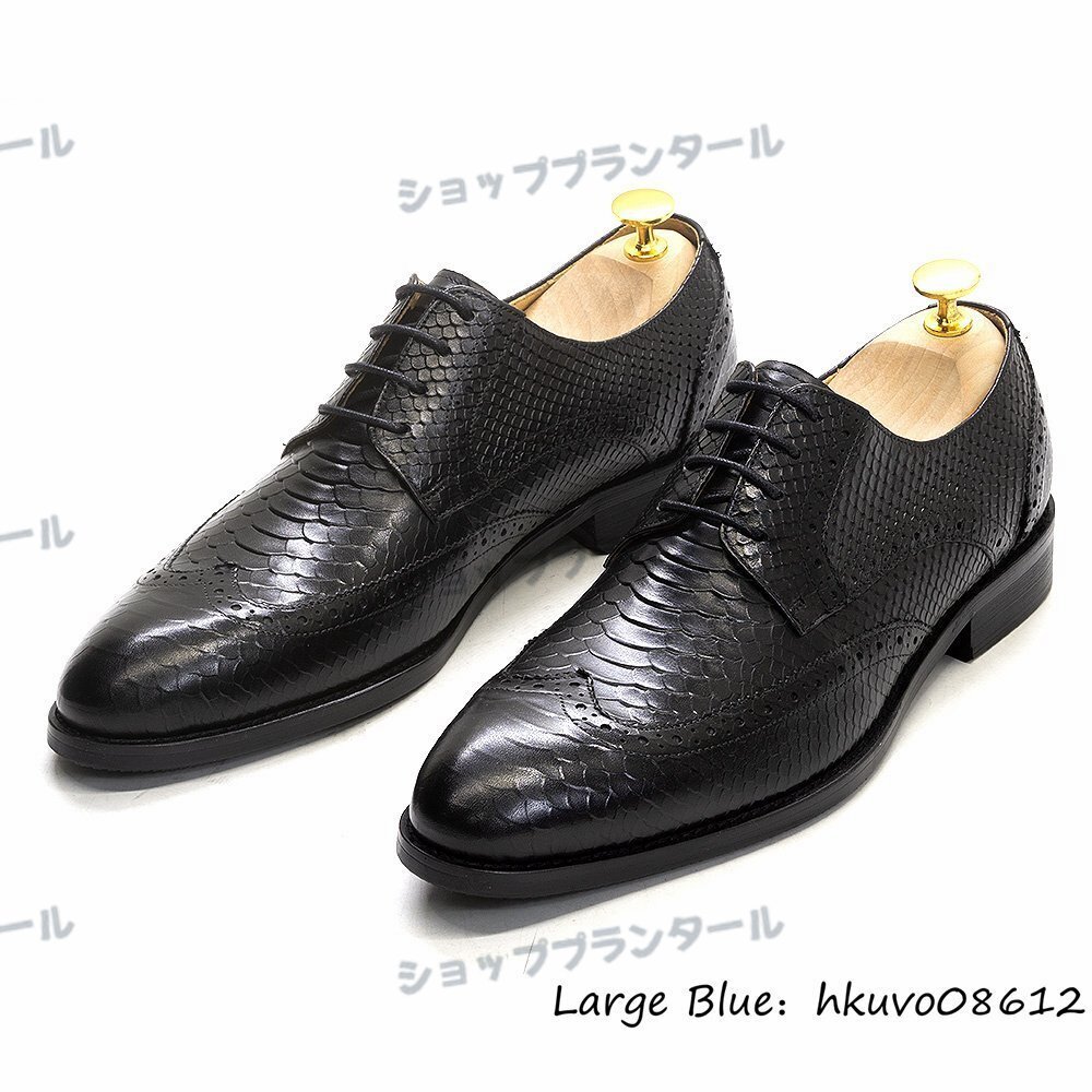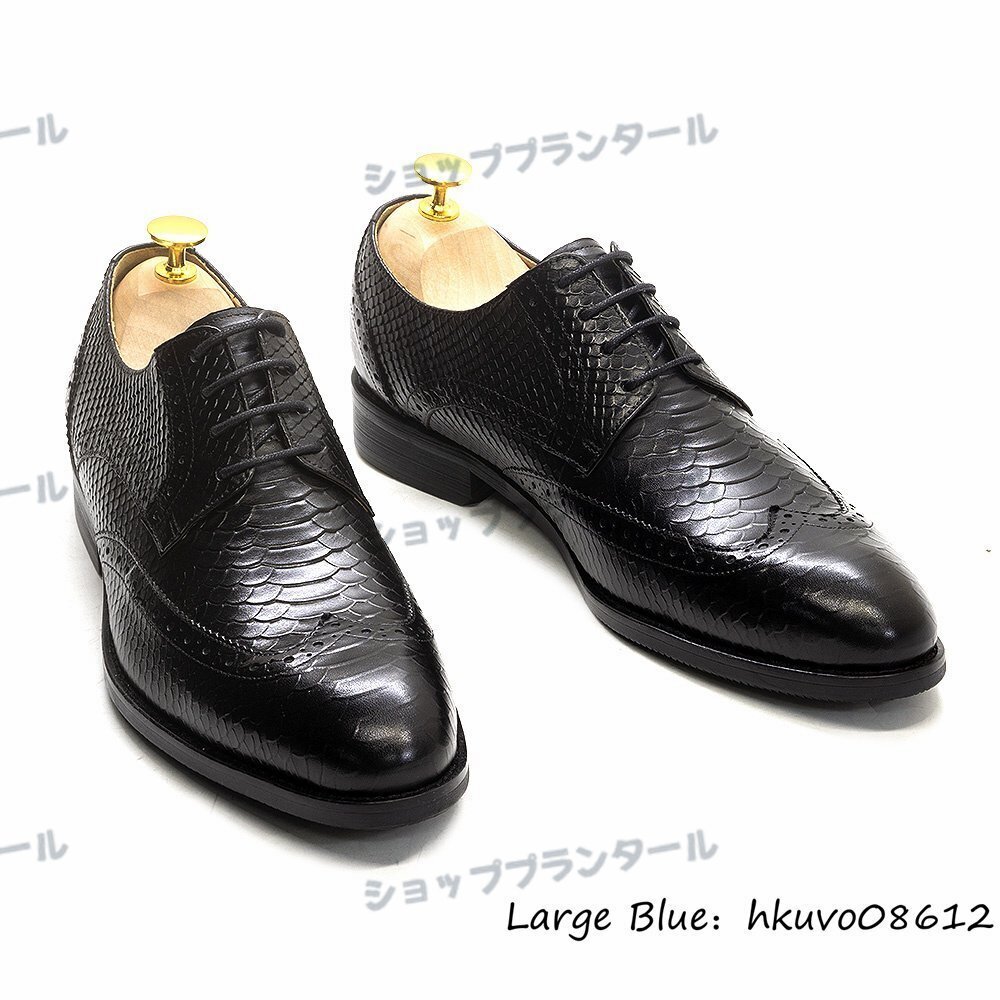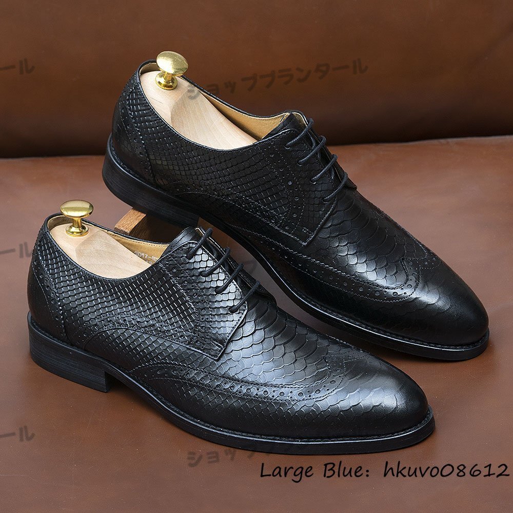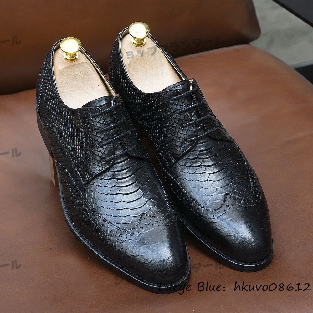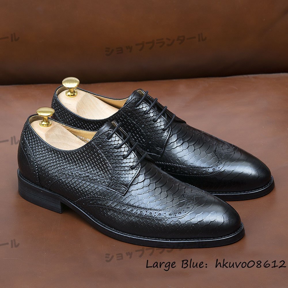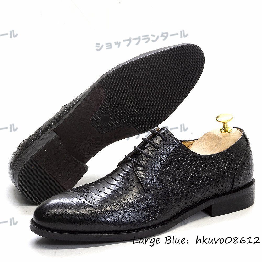 鰐柄 ビジネスシューズ メンズ 本革 職人手作り 彫り 新品 最高級 レザーシューズ 革靴 紳士靴 フォーマル 黒 24.5cm