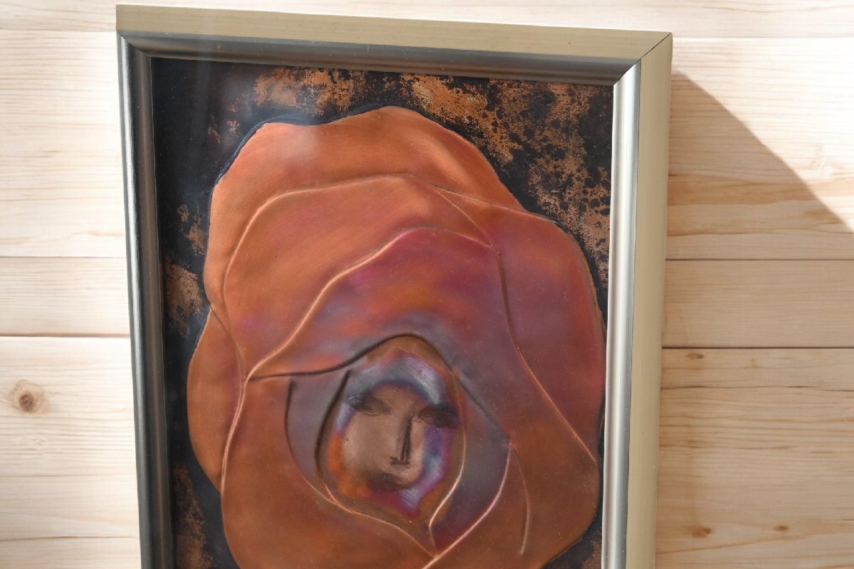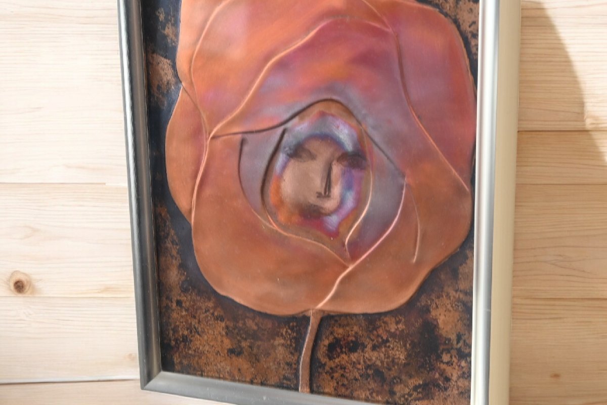 title:福田憲輔 銅板レリーフ作品 額装 薔薇の人 お花の絵 レトロモダン アート ヴィンテージ 古道具のgplus広島 2503i