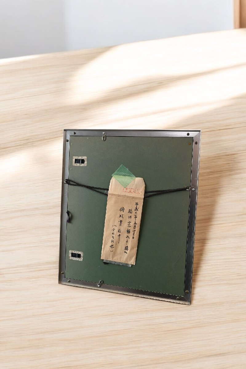 シルバー色の金属枠の額に飾られています