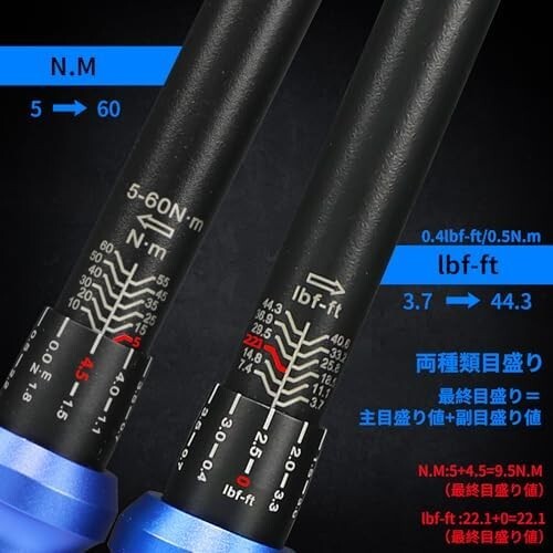 • 最小目盛りは0.5N.mで、微調整できます。