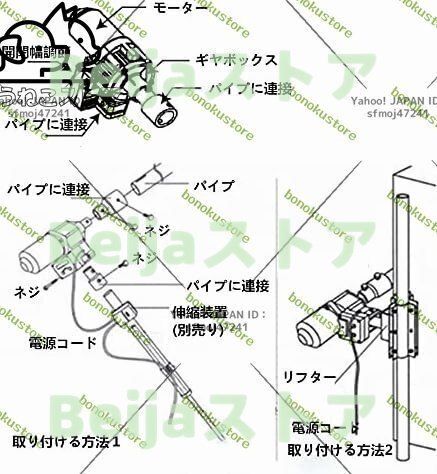 用途:農業ビニール温室側部の透明フィルム/遮光ネット/日よけシェード/不織布/防水カバーなどを巻き上げて通風/日よけ/遮光/防雨用。アフターサービス:取付と電線連接が必要。