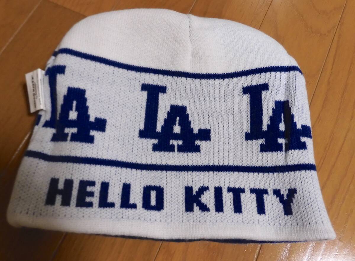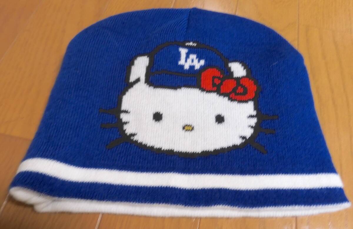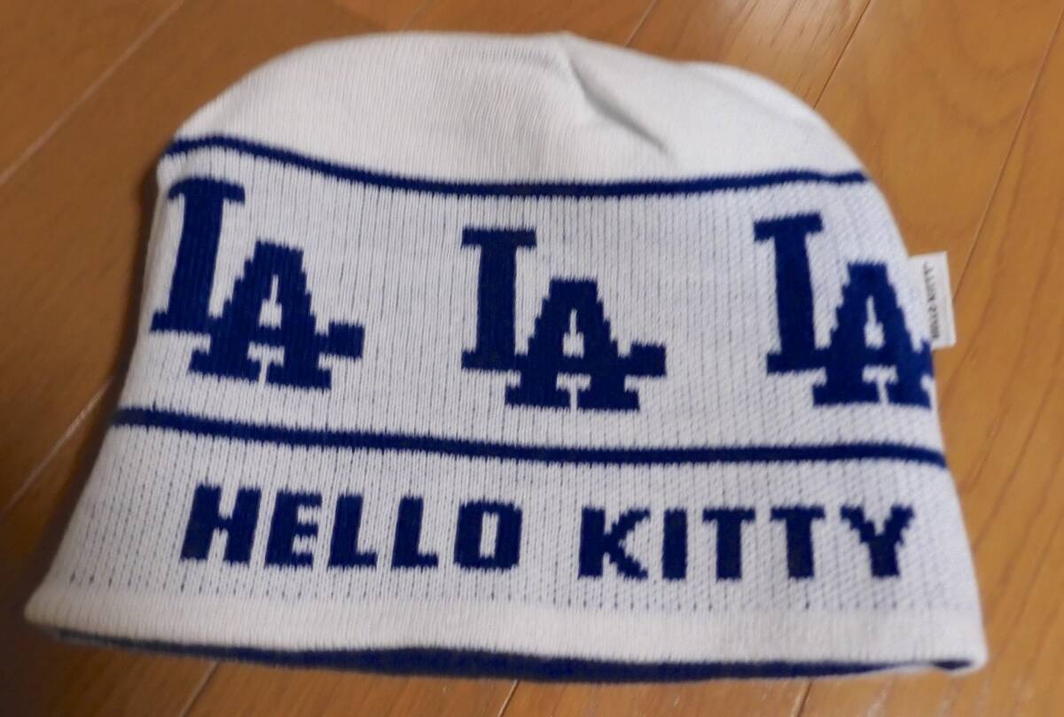 アメリカのメジャーリーグベースボールのチーム「ドジャース」と「Hello Kitty/キティちゃん」のコラボのニット帽です。