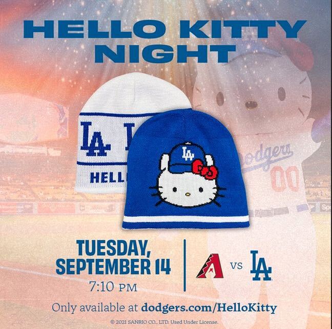 【USA発送★LA Dodgers★ドジャース 】キティちゃん/ハローキティ★ニットキャプ帽子ビーニー★2021年SGA非売品★メジャーリーグ野球