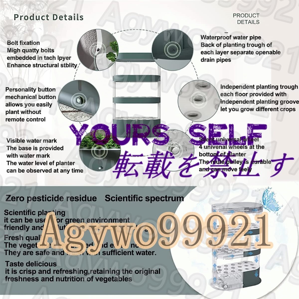 特徴: ?自主栽培 水耕作物の下の3つの層、各層には独立した植栽タンクがあり、層は異なり、各層は異なる作物を育てることができ、最上部のスペースは土壌または水耕栽培にすることができます ?階層制御 4層の植栽層は任意に分割でき、機械の高さはユーザーが制御でき、水位と照明は層によって制御でき、タイミングを設定できます ?目に見える水位 機械の根元に水位線があるので、いつでもプランターの水位を観察できます ?サイレントユニバーサルホイール プランターの底にある4つのユニバーサルホイール、ミュートプーリーは耐久性があり、自由に動くことができます 仕様 製品名: 水耕栽培タワー 製品素材: PP + ガラス繊維 消費電力:90W ネットワーク要件: ネットワークは不要 制御方法:リモコン 管の数: 9 照明カテゴリ: LED フルスペクトル 製品サイズ:1045×685×385mm 製品重量:10kg パッケージ内容: 1×水耕栽培タワーキット