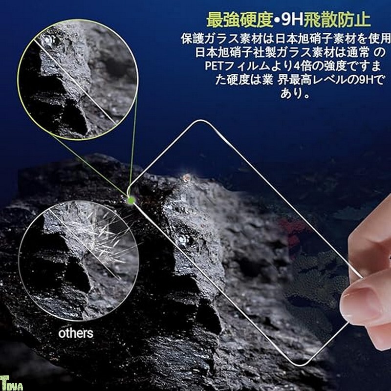 ハードコーティング加工によりガラスの硬さを向上させ正面や側面からの衝撃を最大限に吸収しヒビ割れ防止可能、摩耗、ひっかき傷、全面的な保護を提供します。