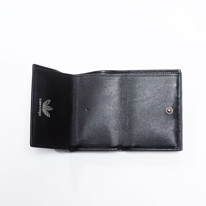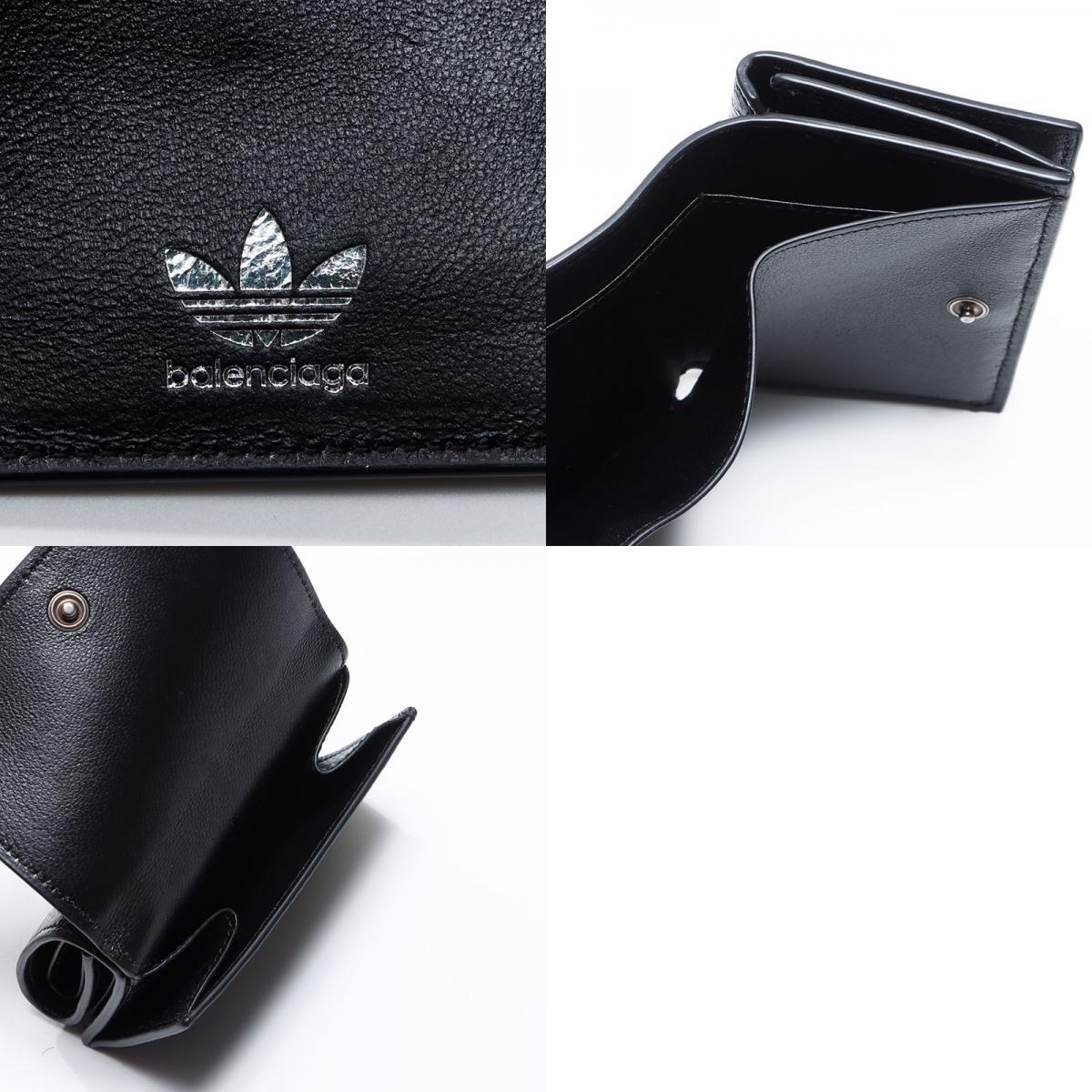 未使用保管品 BALENCIAGA ×Adidas アディダス ミニ コンパクト コラボ 三つ折り財布 ブラック
