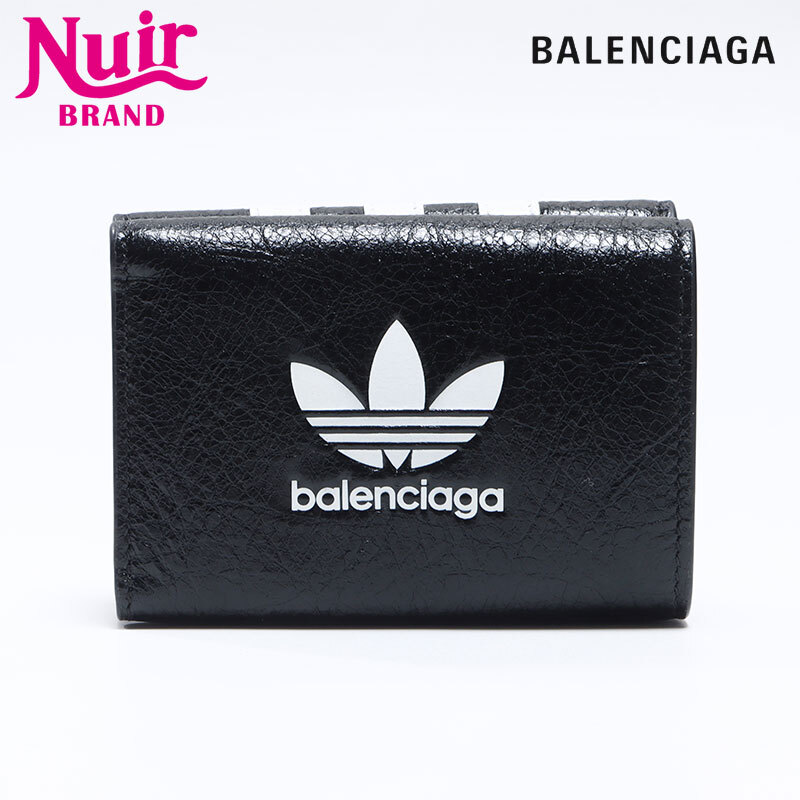バレンシアガ BALENCIAGA 三つ折り財布 ×Adidas アディダス ミニ コンパクト コラボ ブラック