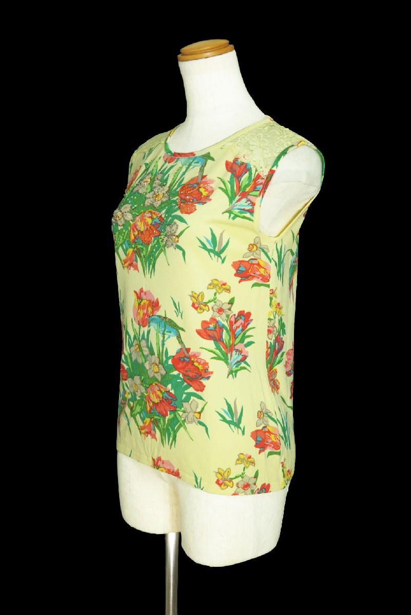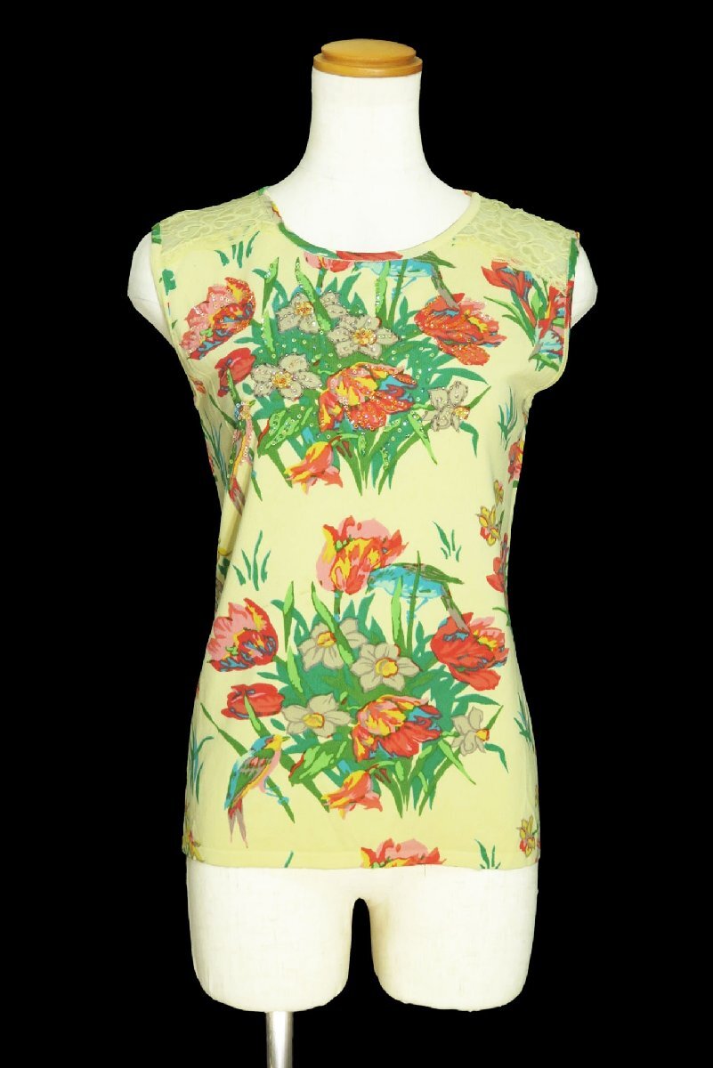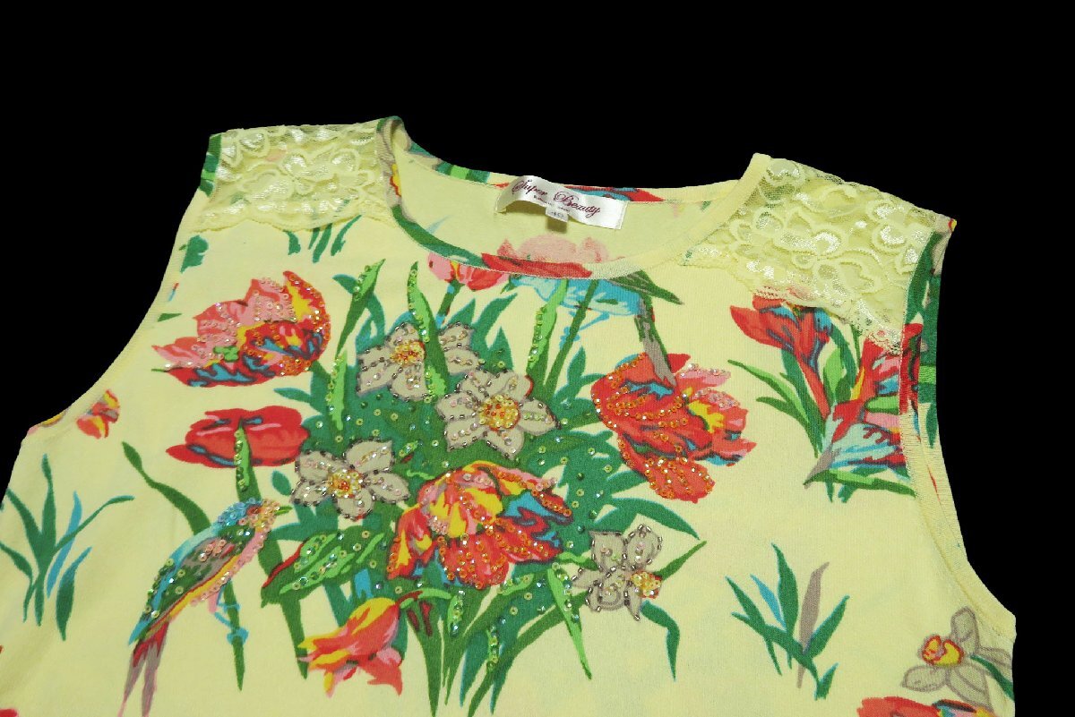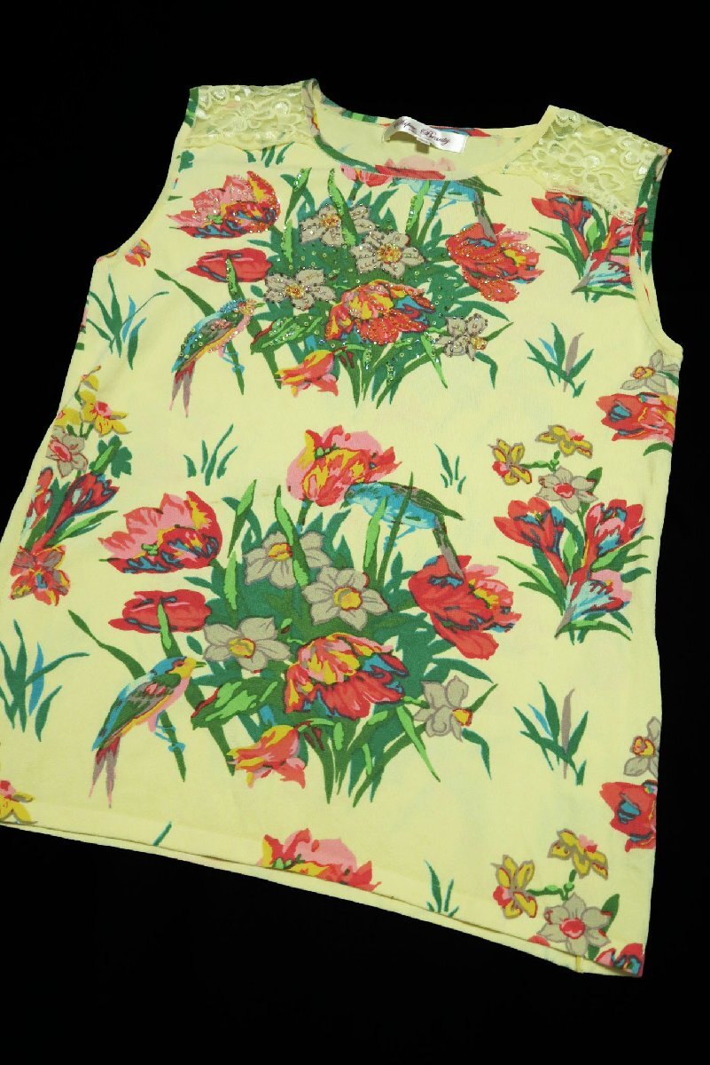 Super Beautyスーパービューティー/花柄プリントニットプルオーバー:40黄nl119