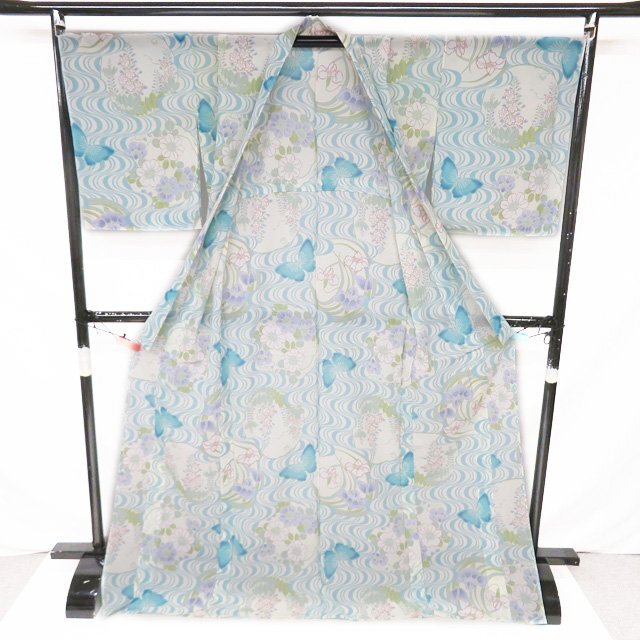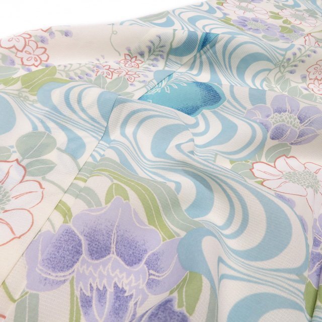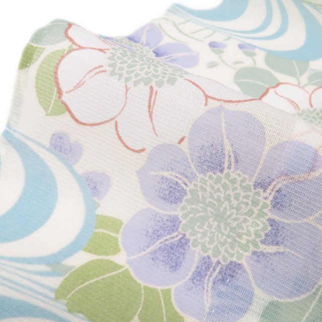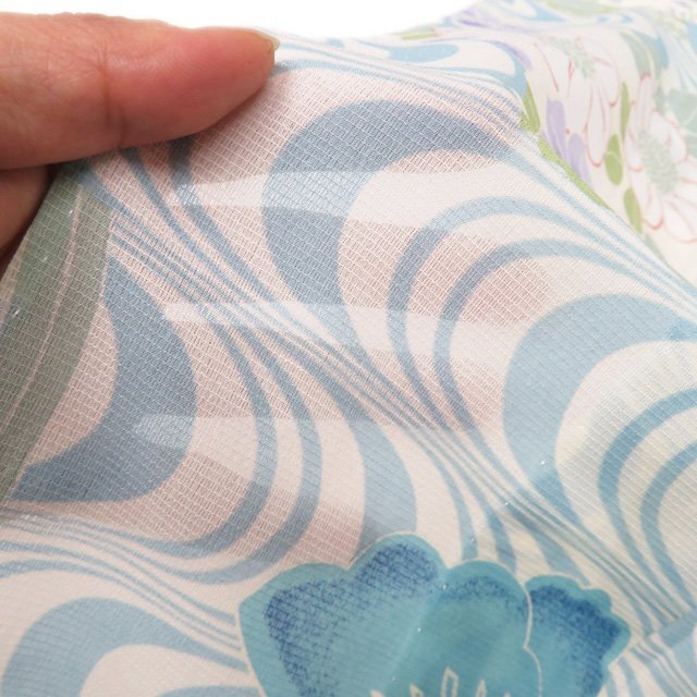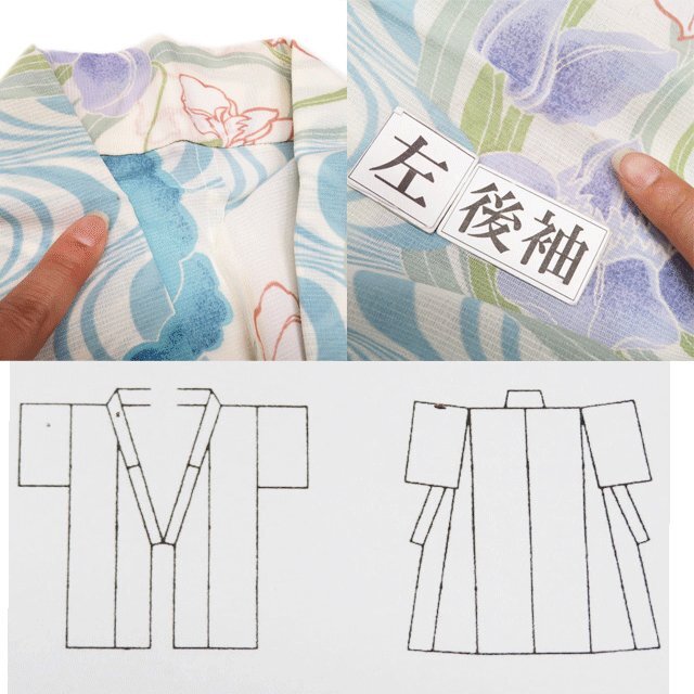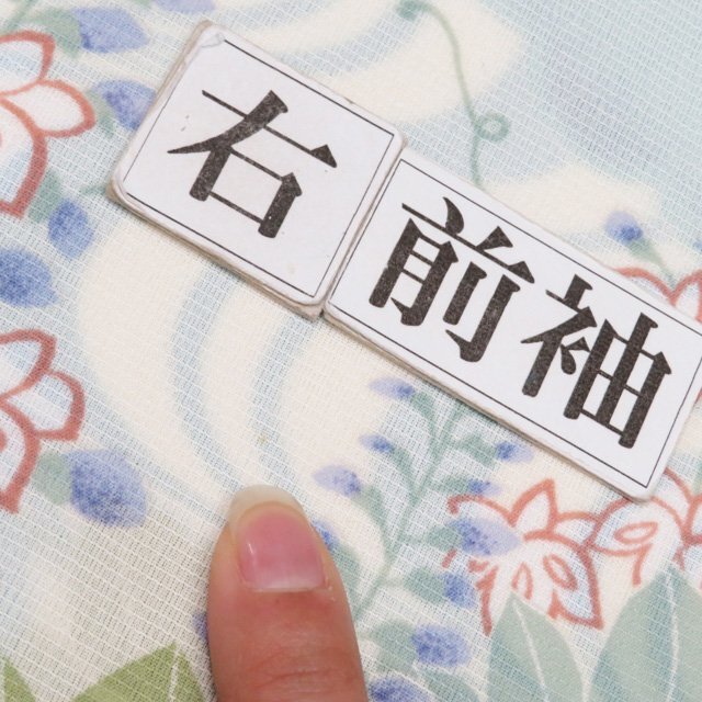 丈177cm(+0) 裄73.5cm(+0) 袖丈52cm(+3.5) 前幅24.5cm 後幅30.5cm ※サイズのお直し、承ります。 (身丈のみ、身幅のみのお直しは承っておりません) ※身丈は肩から測っております。 ※()内は※()内の数字はお直しで直せる長さを示しています。お仕立て直しの場合は胴裏を付け替えるため、さらに長く直せる場合があります。詳しくはお問い合わせください。 単位:cm 素材 ポリエステル 商品ランク C ●着用時期 7月、8月(+-2週間) ●着用シーン 観劇、ご友人との食事、お買い物など ●お色 白色 水色 多色 京都は嵐山の人気ブランド【撫松庵】によるお着物でございます。 ファッションとして日常を彩る、モードでスタイリッシュなデザインを追求するというブランドコンセプトに違わぬ、洗練された美が際立つひと品でございます。より魅力的に、華やかに…撫松庵がおくる夏の装いを、是非お楽しみ下さいませ。 左後袖山、右前袖、右襟に少しシミがございますが、まだまだご着用いただけるお品物です。 居敷当ての付いていない、バチ襟仕立てのお品物です。 涼やかな和のお洒落をお楽しみくださいませ。 写真に写っている着物のみの販売で、帯等の付属品はついておりません。 一部商品は実店舗・他サイトでも並行して販売しておりますので売り切れの際はご了承ください。 その他多数販売中 oku | ||||||
