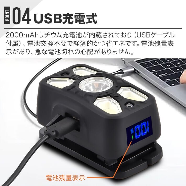センサー機能が搭載されており、両手が自由になります。夜釣りや夜間の庭の手入れ、車の修理時に汚れた手で触らずに手の動きを感知して点灯/消灯できます。センサー機能を使用しない場合も、通常のヘッドライトとして手動で使用できます。