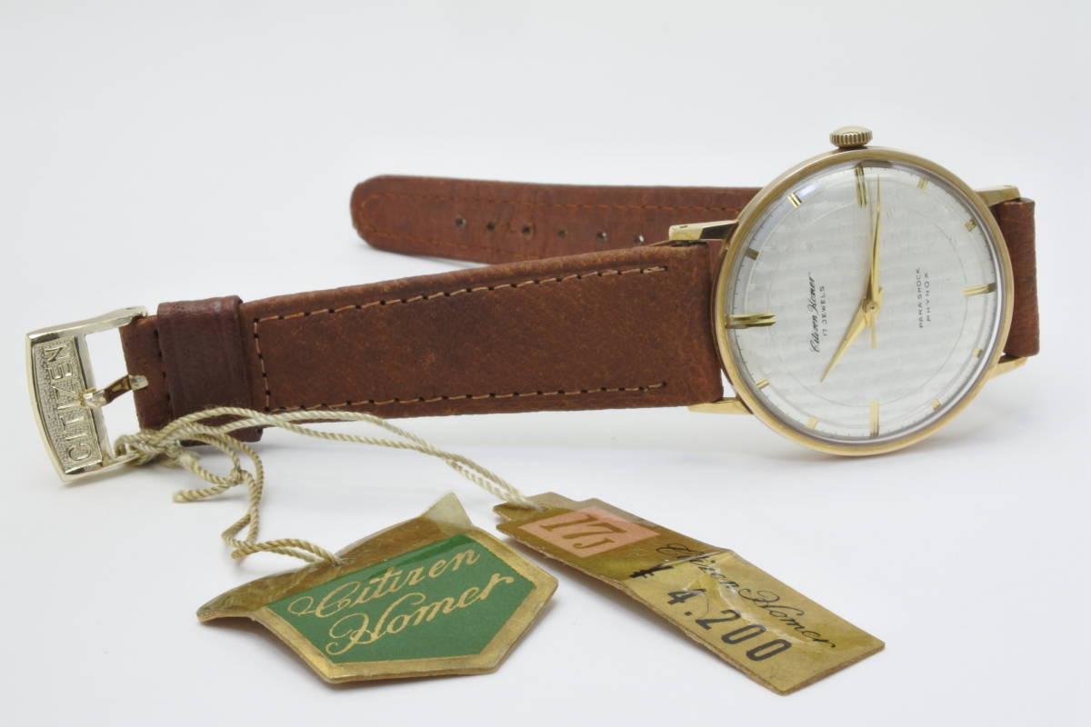 奇跡未使用品稀少文字盤 *1961年製 シチズン CITIZEN HOMER PARASHOCK 17石 手巻紳士腕時計 自動組立設計最初機種