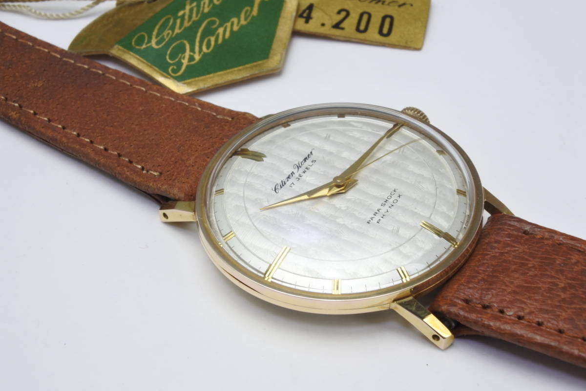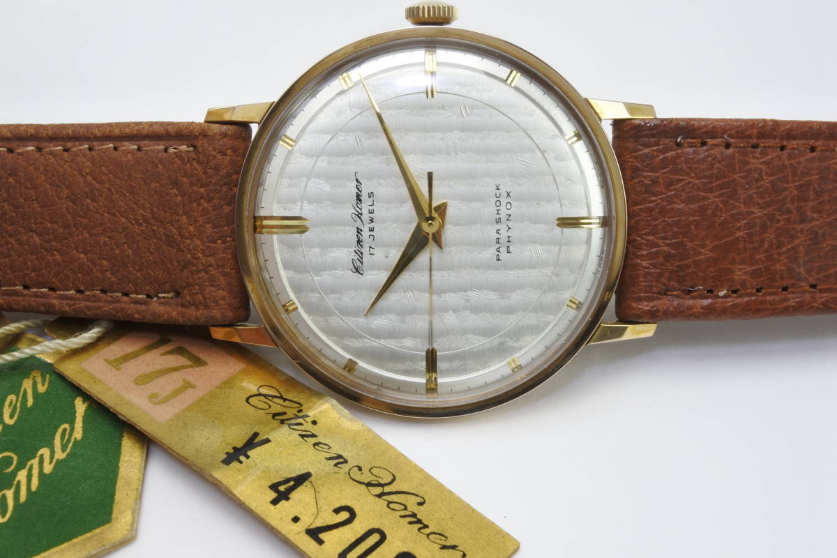 奇跡未使用品稀少文字盤 ☆1961年製 シチズン CITIZEN HOMER PARASHOCK 17石 手巻紳士腕時計 自動組立設計最初機種