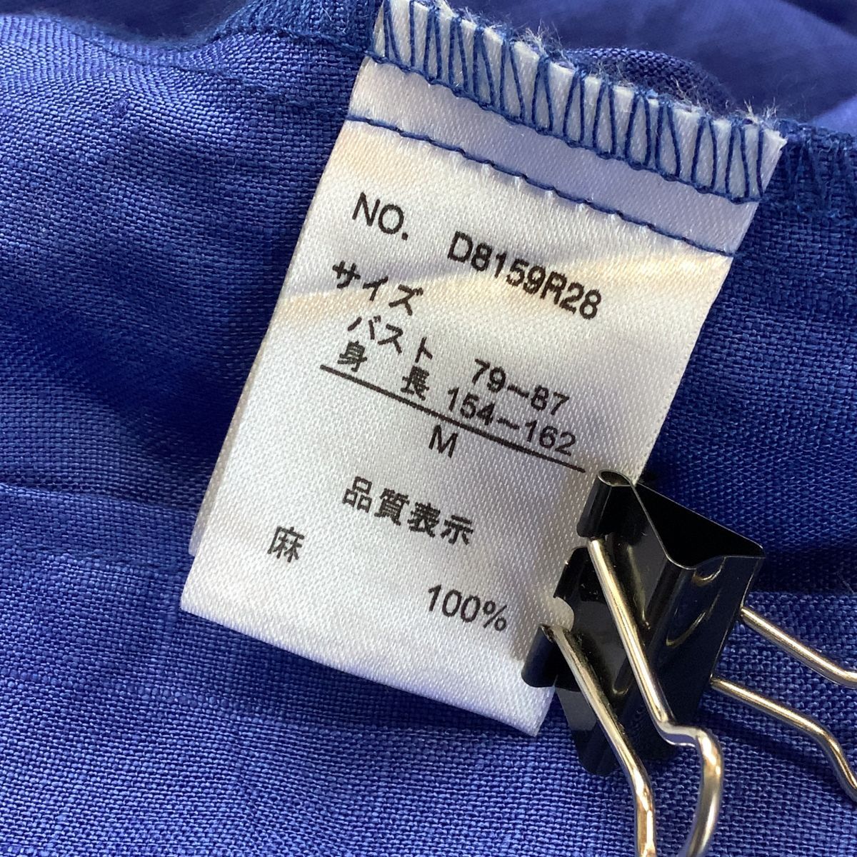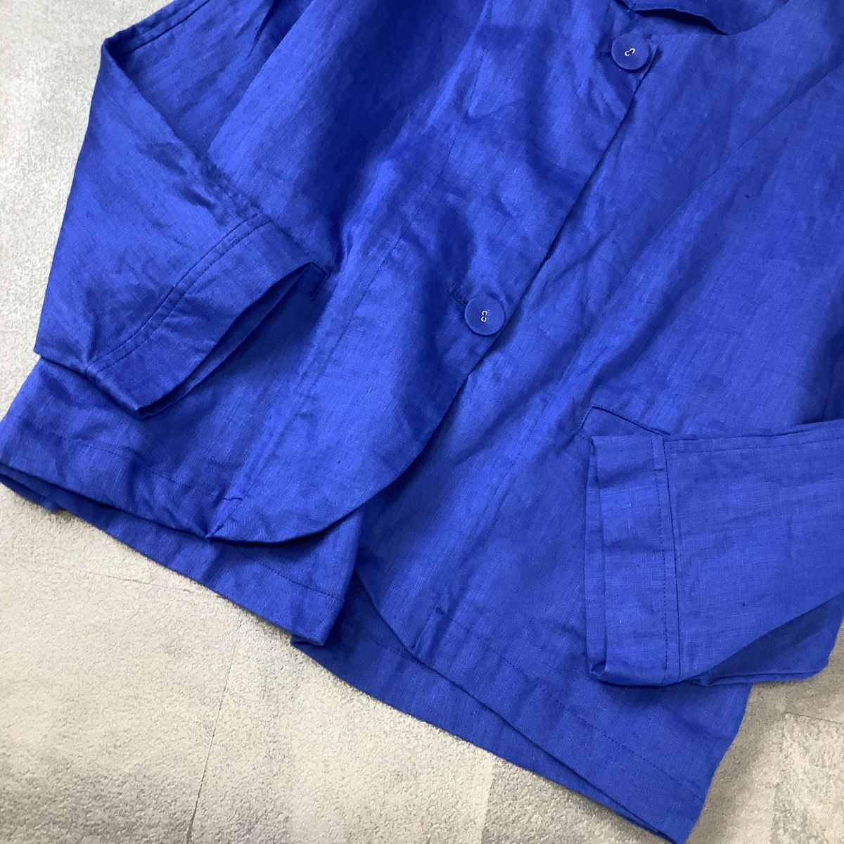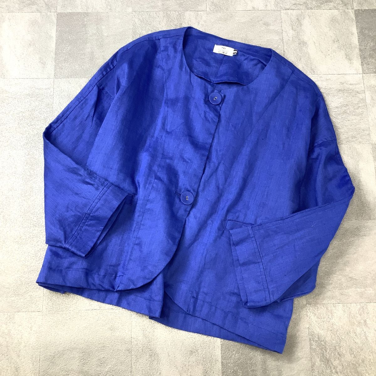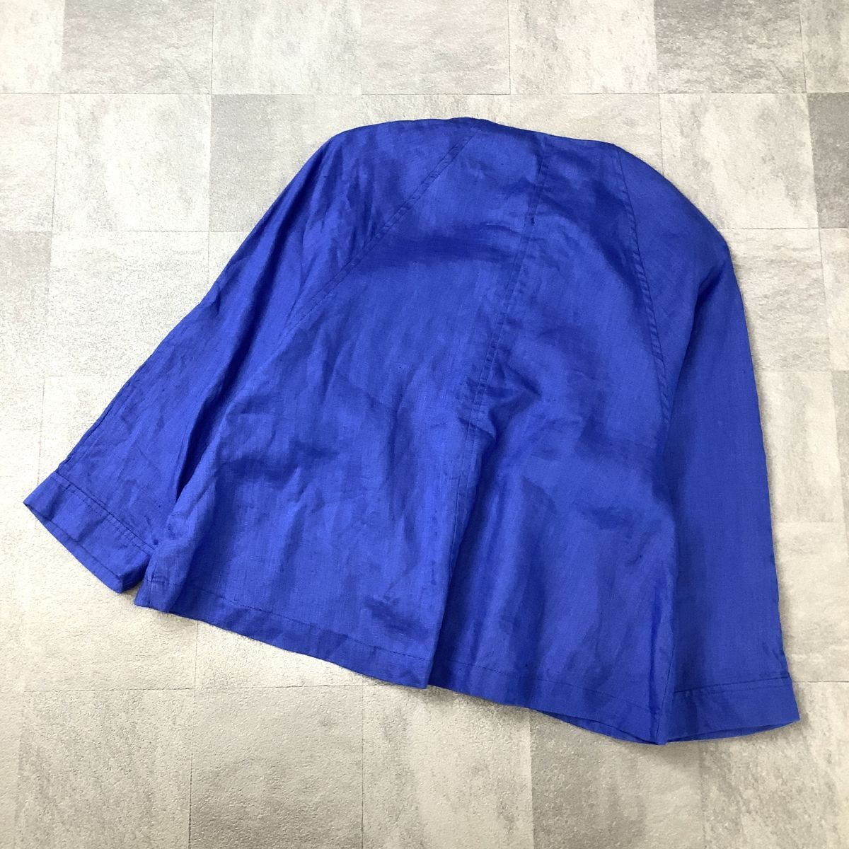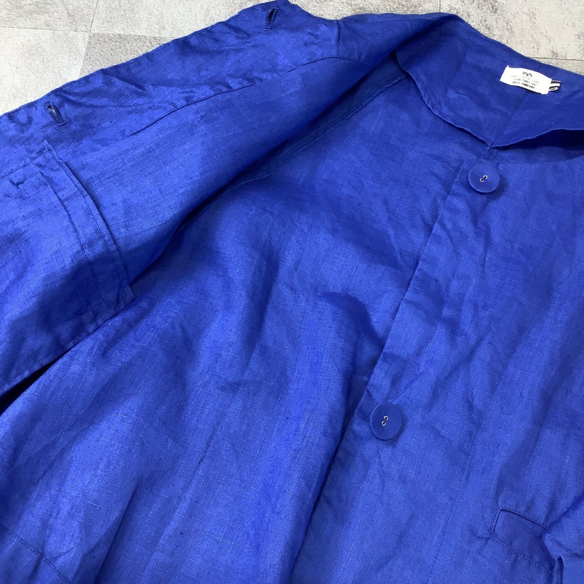 【爽やかなリネン100%】 美品 DGY ノーカラー リネン シャツジャケット レディース Mサイズ ブルー