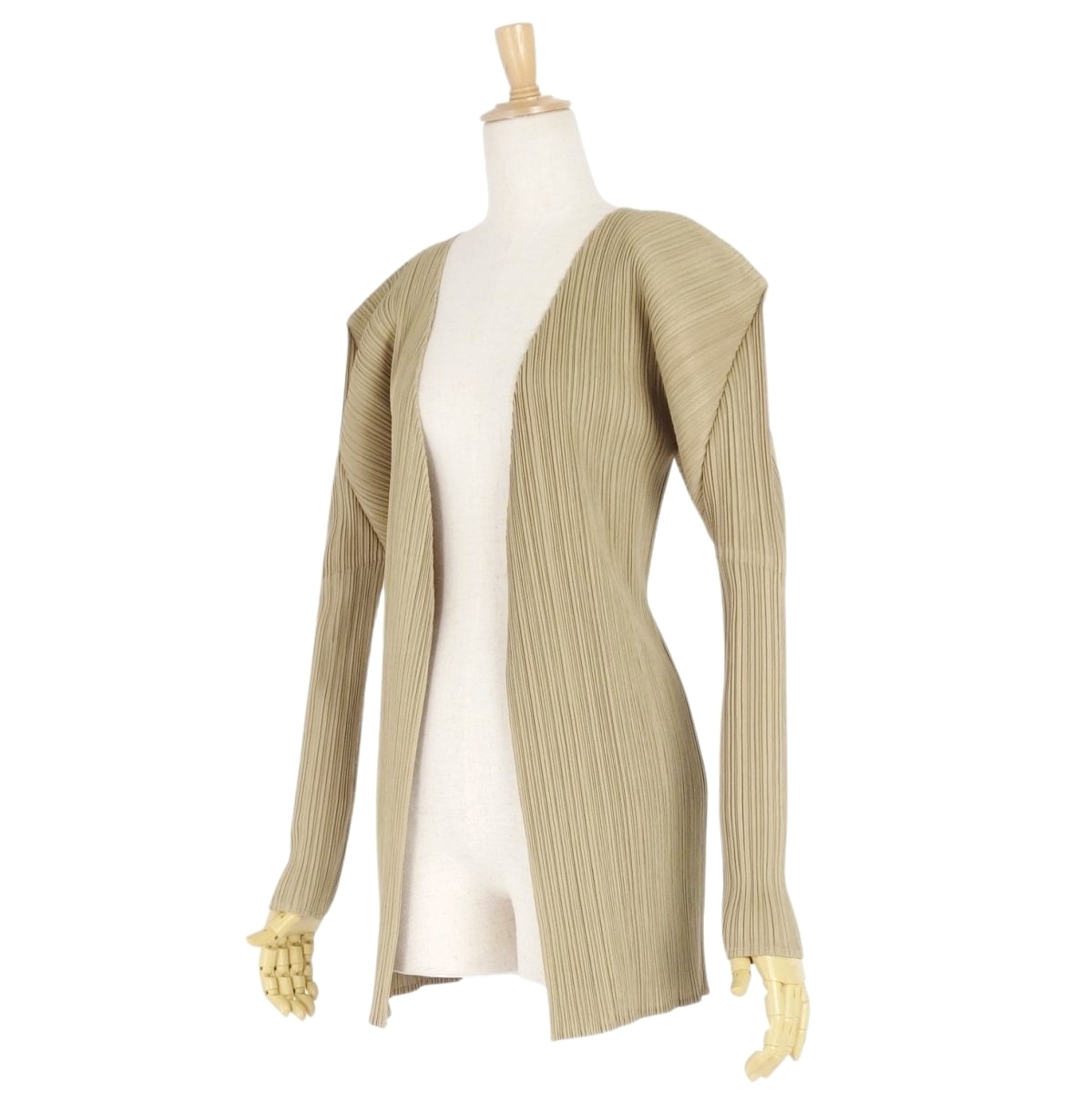 | 美品 プリーツプリーズ イッセイミヤケ PLEATS PLEASE カーディガン ボタンレス ロングスリーブ 長袖 4(XL)ライトカーキ |