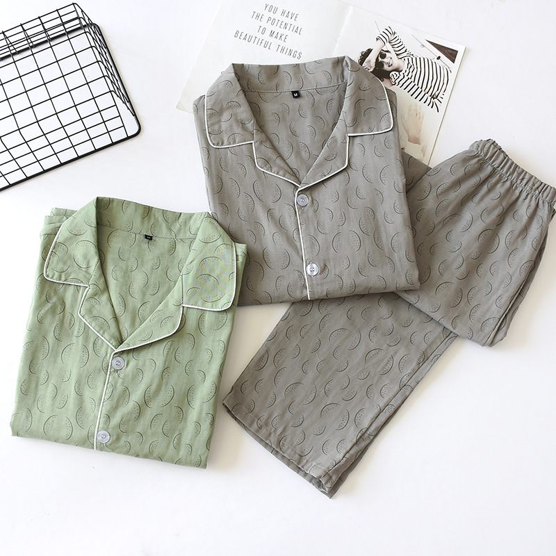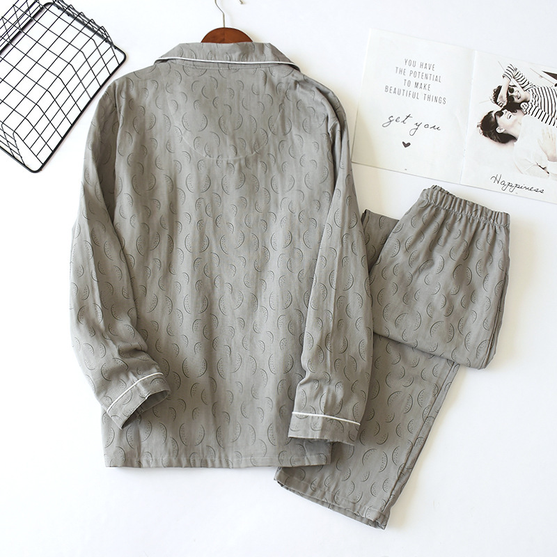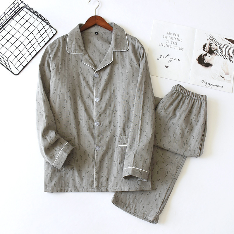 人気品パジャマ ガーゼパジャマ 二重 メンズ ルームウェア 綿100%ガーゼ 前開き 長袖 長ズボン やさしい肌触り 部屋着 春夏秋冬 グレー L