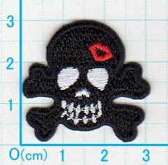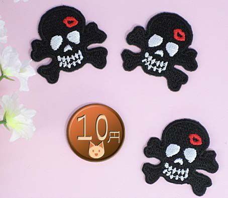 アイロンワッペン/刺繍/アップリケ/キスマークスカルS黒/3枚セット/ガイコツ/海賊/ドクロマーク