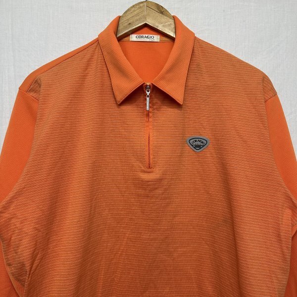 〇CORAGIO コラッジオ ロング スリーブ 長袖 ハーフ ジップ ポロ シャツ ゴルフ スポーツ トレーニング ランニング ウエア L オレンジ